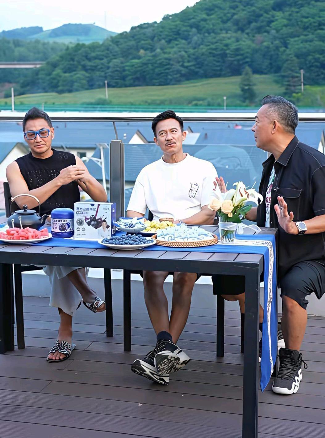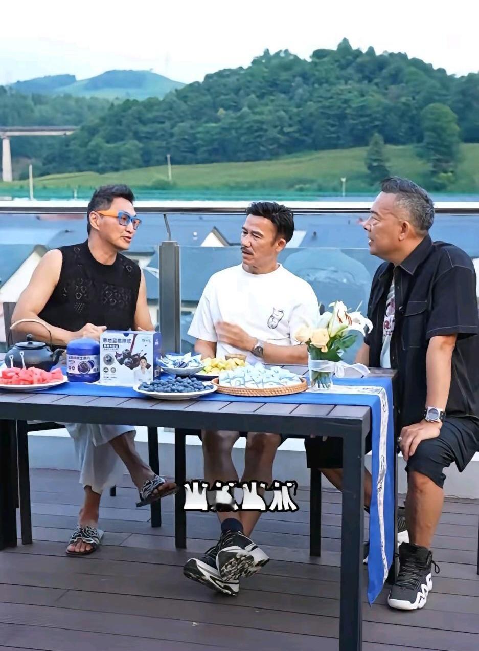 三位港星同框照:我一眼就认出了穿着拖鞋、戴着蓝框眼镜的何家劲与《英雄本色》中把反派角色演得出神入化的李子雄,最右面这位只看侧影就觉得眼熟,但一直不知其名,你能告诉我吗?