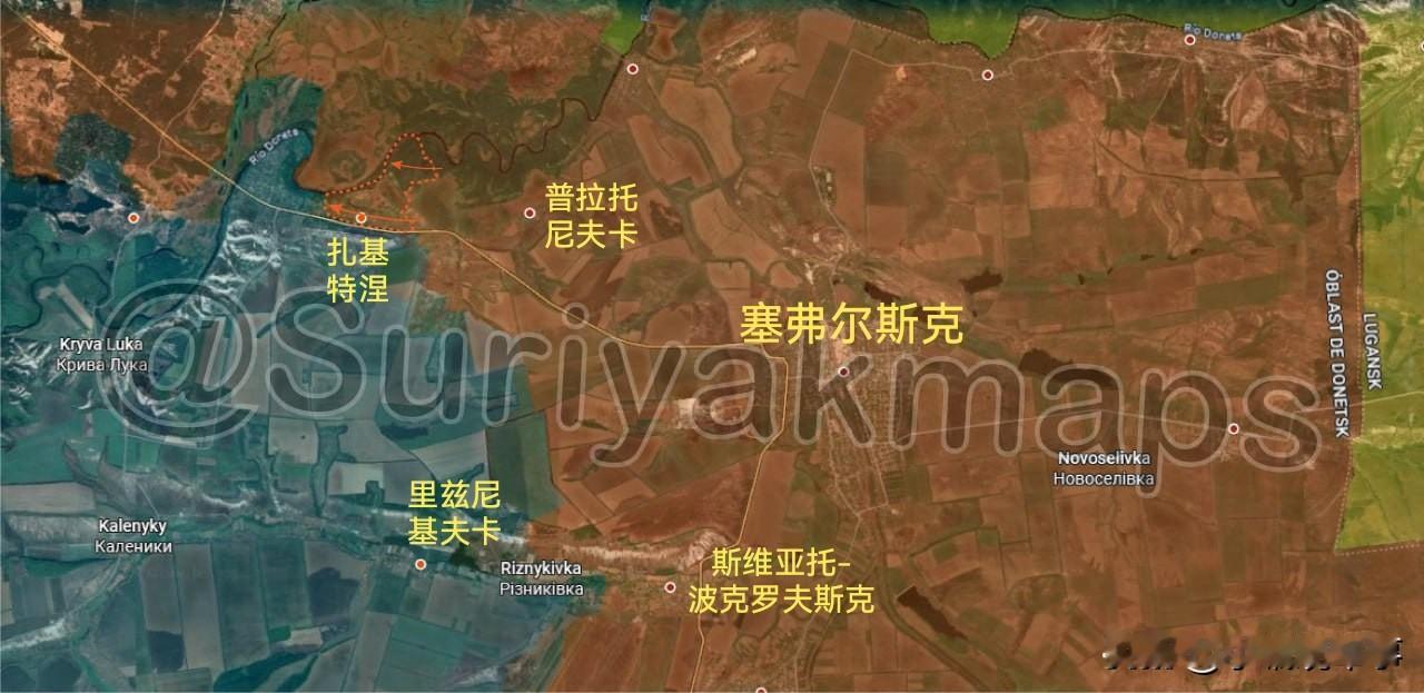 12月28日俄乌最新战报: 1.哈尔科夫州前线: 过去两周里,乌军阻止了俄军在12月初对博古斯拉夫卡村以北地区的推进(图一)。 2.顿涅茨克州北部前线: ①过去两周里,乌军将俄军从亚罗瓦村赶至铁路沿线,该区域战线已被拉平(图二)。 ②俄军占领了奥列克桑德里夫卡村南部斯维亚蒂戈里国家公园的新区域(图二)。 ③过去四天里,俄军沿北顿涅茨河南岸推进,控制了扎基特涅村的大部分区域(图三)。 3.沙霍韦前线: 俄军重新夺回了克拉斯诺利曼斯卡亚煤矿区,并再次占领了新沙霍韦村(图四)。 4.第聂伯罗彼得罗夫斯克州前线: 过去两天里,俄军在索洛纳河西岸占领了新的战壕(图五)。