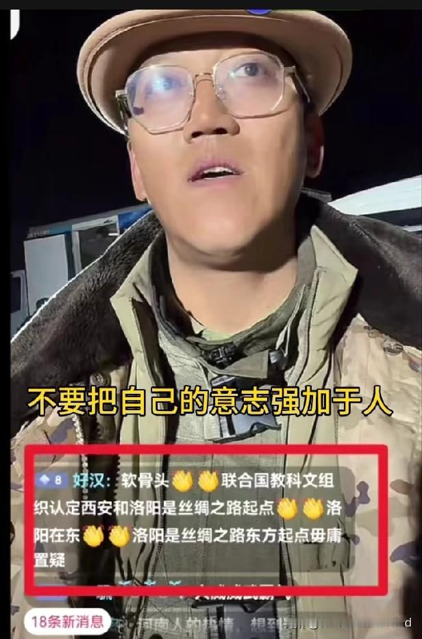 东天山驼队的大威被整懵了。 进入河南似乎就回到了家, 有家的感觉。 陕州区人民的热烈欢迎, 的确温暖着每一位成员的心。 因为驼队走的是感恩之旅。 一旦与重走丝绸之路挂钩, 争议就不会停止, 甚至出现攻击谩骂与威胁。 东天山驼队的确借走丝绸之路, 行感恩之旅。 多点支持,少些指责。 毕竟是徒步千里, 跨越年度到洛阳。 洛阳网友不要再刁难驼队了。 他们尊重国家对丝绸之路起点的认定, 被你们说成软骨头。 他们不提洛阳是丝绸之路的起点, 你们就受不了。 逼着人家说些违心的话吗? 说些违背历史事实, 违背国家认定,国际共识的话吗? 大威从来没有懵逼过, 直到临近最终的目的地洛阳。 可就在即将踏入“家门”的那一刻, 他彻底懵了, 甚至叫爷爷,求爷爷放过。 大威的包容和格局, 难道还感动不了你们吗? 还不愿意放手吗? 说大威是软骨头的人, 你们没看到, 大威即使叫你们爷爷, 求你们放过。 也不愿意违心说洛阳是丝绸之路的起点 依然坚守国家定论,国际共识。 在你们眼里,不如你意, 说他是软骨头。 但在公众面前, 大威,真正的一条汉子。 他在维护着国家的定论, 守护着真正的历史。 极个别的洛阳网友, 请你不要抵消洛阳人民对驼队的热情, 不要寒了前来感恩者的心。 大威直播间里, 大威显得很无奈,有很无语。 多次叫爷爷放过。 个别网友,实属不该。