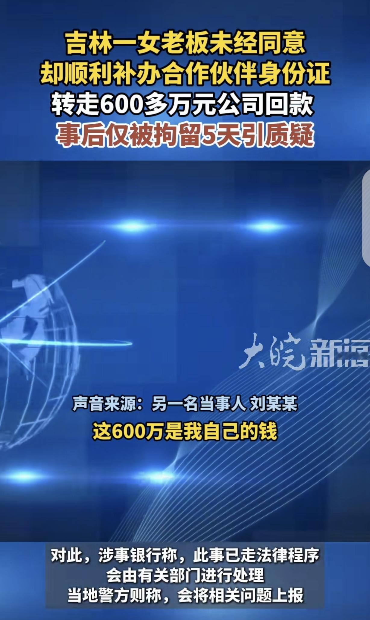 “好一个暗度陈仓!”吉林,一女子去银行办业务,发现自己多了张身 份证,账户少了600万,她心里咯噔一下,报警后才发现,自己的合伙人竟偷摸补办了她的身 份证,悄悄转走600万,可让女子无法接受的是,合伙人只被拘留5日,而且600万一分没追回,女子崩溃,而合伙人一番话,让事情变得扑朔迷离。 2021年12月7日,蔡女士去银行办理业务,却被柜员告知,她名下竟然多出一张身 份证。 蔡女士惊讶不已,众所周知,一个人只有一张身 份证,蔡女士也不是什么特殊的人,当然也不例外。 这凭空多出来的身 份证,到底藏着什么阴谋?蔡女士一查公司账目,更是吓得不轻,账面上竟然少了600万。 蔡女士立马慌了神,赶紧报警,她预感到,被转走的600万,跟那张凭空多出来的身 份证有关。 果不其然,警方查到,这笔钱是被蔡女士的公司合伙人刘某某转走的,当然,蔡女士的身 份证也是她偷摸补办的。 原来,蔡女士开了家公司,当然,这年头,一个人单打独斗势单力薄,提倡合作共赢,蔡女士也想寻找合伙人,共创辉煌。 她经人介绍,认识了女子刘某某,两个人年纪相仿,都胸怀大志,想干一番惊天动地的事业,他们志同道合,一拍即合,于2020年11月,达成合伙意愿,又找了个合伙人,三方签订了合作协议。 可她万万没想到,刘某某竟然让自己的司机,背着蔡女士偷偷去补办了一张她的身份证,然后悄悄从银行转走了600万。 这600万是公司回收回来的货款,这笔钱就这么被转走,公司运转困难,难以维系。 最后,刘某某被拘留5日,但600万至今都没追回。 这让蔡女士非常崩溃,在她看来,既然对刘某某进行拘留5日的行政处罚,就说明她的行为是违法的,为啥钱追不回来? 记者联系了刘某某,她对蔡女士的不依不饶感觉很无语,她说这600万是她投资入股的钱,她不想合作了,转走没毛病。 如果光明正大的跟蔡女士要,她肯定不会给,她可不想自己的血汗钱被蔡女士骗走。 所以,刘某某认为自己不得已才用这个办法,她悄悄补办蔡女士的身份证,已经受到处罚了,蔡女士已经告了她很久,钱没要求返还说明自己有理有据,钱是自己的,凭啥还? 事情到目前为止,问题是,不是本人能补办身份证,利用补办的身份证,不是本人能转走600万,刷脸起作用吗?法律的作用在哪?普天之下,哪里安全? 公司间合作,因经济纠纷,应走正常法定程序,维护自己合法权益!违法办理他人身 份证!危害很大!会造成恐慌,没有安全感!没有本人到场?是如何办出的身 份证? 这是两件事:第一件是冒充他人办身 份证。第二件事,利用身份证转款,看样子只处理了冒充他人办身 份证的违法行为。至于转款,大概率的认可了对方的说辞,就是人家转的是自己的钱。 蔡女士就因为想找个合伙人一起把公司做大,谁能想到碰上刘某某这么个心机之人。 刘某某偷偷摸摸补办蔡女士的身 份证,还转走600万货款,这操作简直太恶劣了,完全就是违法犯罪啊! 可结果呢,刘某某就只被拘留了5天,600万到现在都没追回来。蔡女士肯定觉得委屈又崩溃,自己辛辛苦苦打拼,钱就这么没了,换谁谁能受得了啊。 刘某某说那600万是她投资的钱,不想合作了转走没毛病。这理由也太牵强了吧!就算有经济纠纷,那也得走正规的法律途径解决啊,怎么能用这种违法的手段呢?这不是明摆着耍无赖嘛。 而且让人想不通的是,不是本人怎么能补办身份证呢?银行转账又怎么能凭一张补办的身 份证就转走那么多钱呢?这里面是不是存在一些漏洞和监管不力的问题呢? 这整件事给我们敲了个警钟,不管是找合伙人还是办业务,都得多个心眼儿。 找合伙人得好好考察对方的人品和信誉,不能光看表面。办业务的时候,也得保护好自己的个人信息,防止被不法分子利用。 同时,也希望加强身份证办理和银行转账等方面的监管,完善相关法律法规,让那些违法犯罪的人受到应有的惩罚。 《刑法》第280条规定:盗用、冒用他人居民身份证,情节严重的,处拘役或者管制,并处或者单处罚金。 刘某某指使司机冒充蔡女士补办身份证,属于典型的“冒用他人居民身份证”行为。 该行为已涉嫌刑事犯罪,而非仅适用行政拘留的治安违法。 刘某某被处以5日行政拘留,明显处罚过轻,没充分评价危害性。 行政拘留5日仅针对“补办身份证”这一行为,但没涵盖后续转走600万元的行为。 刘某某辩称600万是“应得投资款”,但她通过非法手段,伪造身份证、使用作废公章开户,转移资金,涉嫌盗窃罪或职务侵占罪。 如果资金确属公司货款,即便存在经济纠纷,刘某某也无权通过非法手段侵占。 身份证补办需本人到场或合法委托,但司机竟能成功冒充蔡女士办理,暴露管理审核失职。 银行开户时使用作废公章和新办身份证,非原件,却没有效核验本人意愿,银行称“与法人核实”但蔡女士否认,明显违反银行风控规定。 关注@灋律盐究员 学法辩是非,用法止纷争。