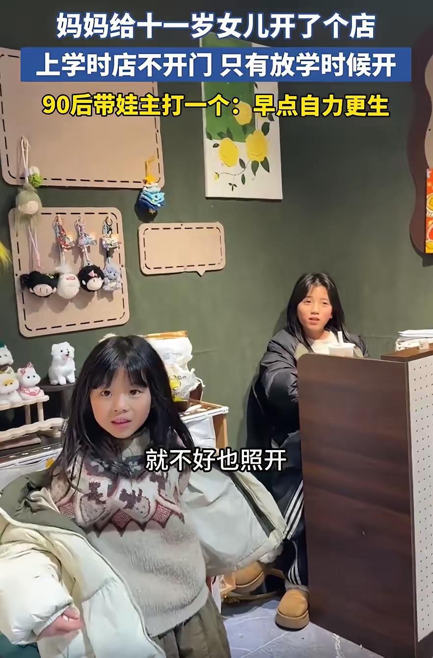 这就是有钱任性!河南,女子路过一家小店时进去逛了逛,可她却发现,店里只有两名小女孩,没有大人,一问才知道,这家店是家长专门给女儿开的店,平时上学了店门就关上,只有放学后才会开。网友:90后带娃主打一个自力更生 河南街头,一位女子偶遇一家特别的小店,平日里大门紧闭,唯有放学时段,才会敞开门做生意。 她推门进去,店里没有大人,只有两个稚气的小女孩,一问才知,这家店的店主,就是眼前这位11岁的小姑娘。 女子满心诧异,本以为只是孩子临时看店,没想到家长从不过来打理,这小店,完完全全是孩子自己的天地。 她忍不住折返回去追问,孩子脆生生的回答,更是戳中了人心:爸妈有要求,成绩考到80分以上,才能继续守着这家小店。 原来这不是一时兴起的玩闹,是父母用心铺的路,也是给孩子立的规矩。 这事传到网上,有人直言这是有钱任性,开店不图盈利,只当给孩子练手,普通人家学不来。 可细想下来,这哪里是任性,分明是最清醒的教育。 比起逼着孩子埋头刷题,报满各种补习班,这样的小店,是孩子最真实的成长课堂。 守店的日子里,孩子要学着算账、待人接物,学着平衡学业和小店的时间,更能早早懂得赚钱的不易,懂得取舍和责任。 眼前的小姑娘,言行大方沉稳,举手投足间,比同龄孩子多了几分从容和懂事,这便是最好的证明。 90后的新式养娃,从来不是娇生惯养,而是放手让孩子去体验,去经历。 不是所有的成长,都藏在书本里。能在力所能及的范围内,让孩子触摸到生活的烟火气,习得谋生的小本领,这何尝不是一种幸运。 所谓的有钱任性,不过是父母的用心良苦,把爱和格局,融进了孩子的成长里。