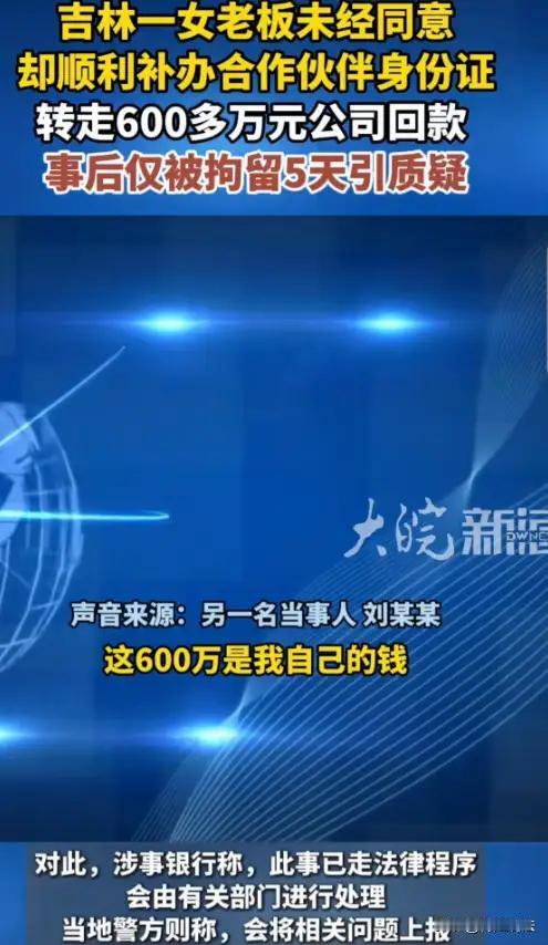 吉林,蔡女士本想和合伙人把公司发展壮大,却在2021年12月7日去银行办业务时,遭遇了离奇之事。她发现自己名下莫名多出一张身份证,公司账户里的600万货款也不翼而飞。报警后得知,竟是合伙人刘某某指使司机偷偷补办了她的身份证,进而转走了这笔钱。然而,刘某某仅仅被拘留了5日,600万也未能追回。刘某某还声称这钱是她投资入股的钱,不想合作了转走很正常。此事引发诸多疑问,非本人为何能补办身份证、转走巨款,银行和身份证办理是否存在漏洞? 吉林的蔡女士,本以为自己正站在创业的黄金路上,满怀希望与梦想,准备带领公司迈向更高的台阶。然而,一场突如其来的“意外”,彻底打乱了她的计划,也让她的信任瞬间崩塌。这不是普通的商业争端,也不是简单的财务纠纷,而是一场令人震惊的身份盗用与财产被窃事件,更是一面折射出社会制度漏洞的镜子。 2021年12月7日,蔡女士像往常一样走进银行,准备办理一项普通的业务。谁曾想,这次平凡的银行之行,却成为她人生的转折点。她在办理业务时,突然被告知,她的身份证信息已被“补办”完毕,且新身份证已被使用。而更令人震惊的是,她账户里的600万货款,竟在毫无预警的情况下,悄然消失得无影无踪。 事情的真相逐渐浮出水面:原来,合伙人刘某某在蔡女士毫不知情的情况下,指使司机偷偷补办了她的身份证。借助伪造的身份证信息,刘某某成功地转走了那笔巨款。更令人愤怒的是,刘某某竟然声称,这600万是她的“投资入股的钱”,她“转走”完全是正常的商业行为,似乎没有任何违法之处。 这场闹剧般的“盗窃”,不仅让蔡女士一夜之间失去了全部积蓄,也引发了社会对身份证、银行系统安全性以及合伙人诚信的深刻质疑。为什么一个普通的身份证可以被如此轻易地“补办”?为什么银行在处理大额转账时,没有任何额外的身份验证措施?为何如此明显的“非法操作”竟然没有引起系统的警觉?更令人心寒的是,刘某某仅仅被拘留了5天,600万的资金未能追回,似乎一切都变得那么无力又荒诞。 这背后隐藏的,不仅仅是一个个体的悲剧,更是一场制度的反思。我们不禁要问:身份证的“补办”流程,是否存在漏洞?银行的风控机制,是否过于薄弱?在这个数字化、信息化的时代,个人信息的安全究竟在哪里?又有多少像蔡女士一样的普通人,成为了“系统漏洞”下的牺牲品? 更令人担忧的是,刘某某的辩解、“这是投资入股的钱,转走很正常。”折射出一些人在利益面前的冷漠与无底线。或许,在某些人眼中,法律的底线早已模糊,诚信变得可有可无。这样的“正常操作”,究竟还算是商业合作,还是道德的沦丧?这不仅是蔡女士的悲剧,更是整个社会诚信体系的警钟。 然而,令人欣慰的是,蔡女士没有选择沉默。她勇敢地站出来,用实名举报揭露了这一系列令人发指的黑幕。她的行动点燃了公众对个人信息安全、金融安全的关注,也引发了社会对制度漏洞的深刻反思。她用实际行动告诉我们:即使身陷困境,也不能放弃对正义的追求。 这个事件,让我们看到,制度的完善远远还不够,公众的法律意识、风险意识亟需提高。每个人都应该成为自己信息的第一守护者,而不是任由他人肆意操控。银行、公安、监管部门,更应该强化信息验证机制,堵住那些“漏洞”,让黑暗无处遁形。 同时,也提醒我们:在这个看似繁荣的数字社会背后,潜藏着太多不为人知的隐患。我们每个人都可能成为“下一只受害的羔羊”。只有全民共同努力,提升安全意识,完善制度设计,才能让类似的悲剧不再重演。 蔡女士的故事,是一面镜子,也是一剂警钟。它激励我们反思:在追求商业利益的同时,是否也在无意中放松了对制度的监督?在便利的背后,是否隐藏着危险的陷阱?我们需要的,不仅仅是法律的刚性,更是制度的智慧和全民的警觉。 最后,让我们为蔡女士点赞,也为那些在黑暗中奋起抗争的普通人喝彩。她们的勇气,是社会正义的火种;她们的坚持,是制度完善的动力。希望未来,我们每个人都能成为自己信息的“第一守门员”,让制度的漏洞不再成为黑暗的温床。 这起事件,绝非孤例。它提醒我们:在这个充满机遇与挑战的时代,守住自己的底线,维护自己的权益,才是最坚实的防线。让我们共同呼吁:完善制度,强化安全,让每一个普通人都能在这个社会里,安安心心、平平安安地生活。法人合伙人 公司业务合伙人