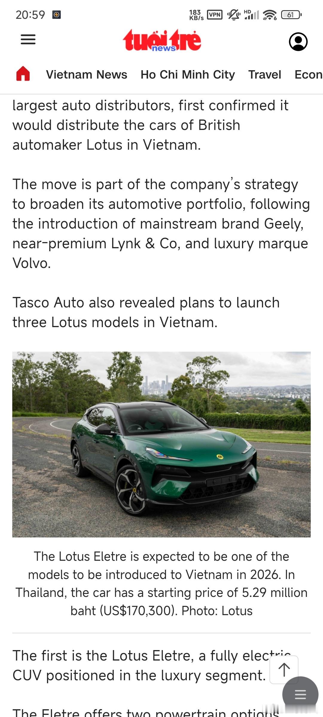 极氪和路特斯明年将进入越南市场,代理商Tasco Auto在周六举行的Tasco Mobility Day 2025活动中宣布引进这两个品牌,之前已成功引进了吉利、沃尔沃和领克。极氪