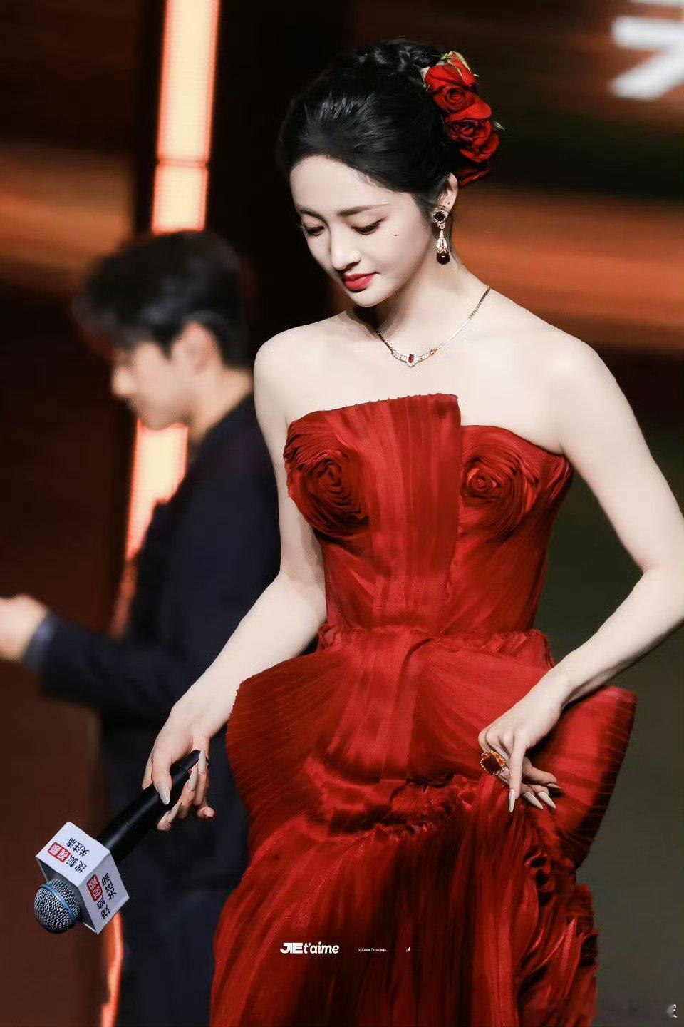 周洁琼昨天活动绿眸配红唇 周姐你美啊 非常的明艳大气富贵花