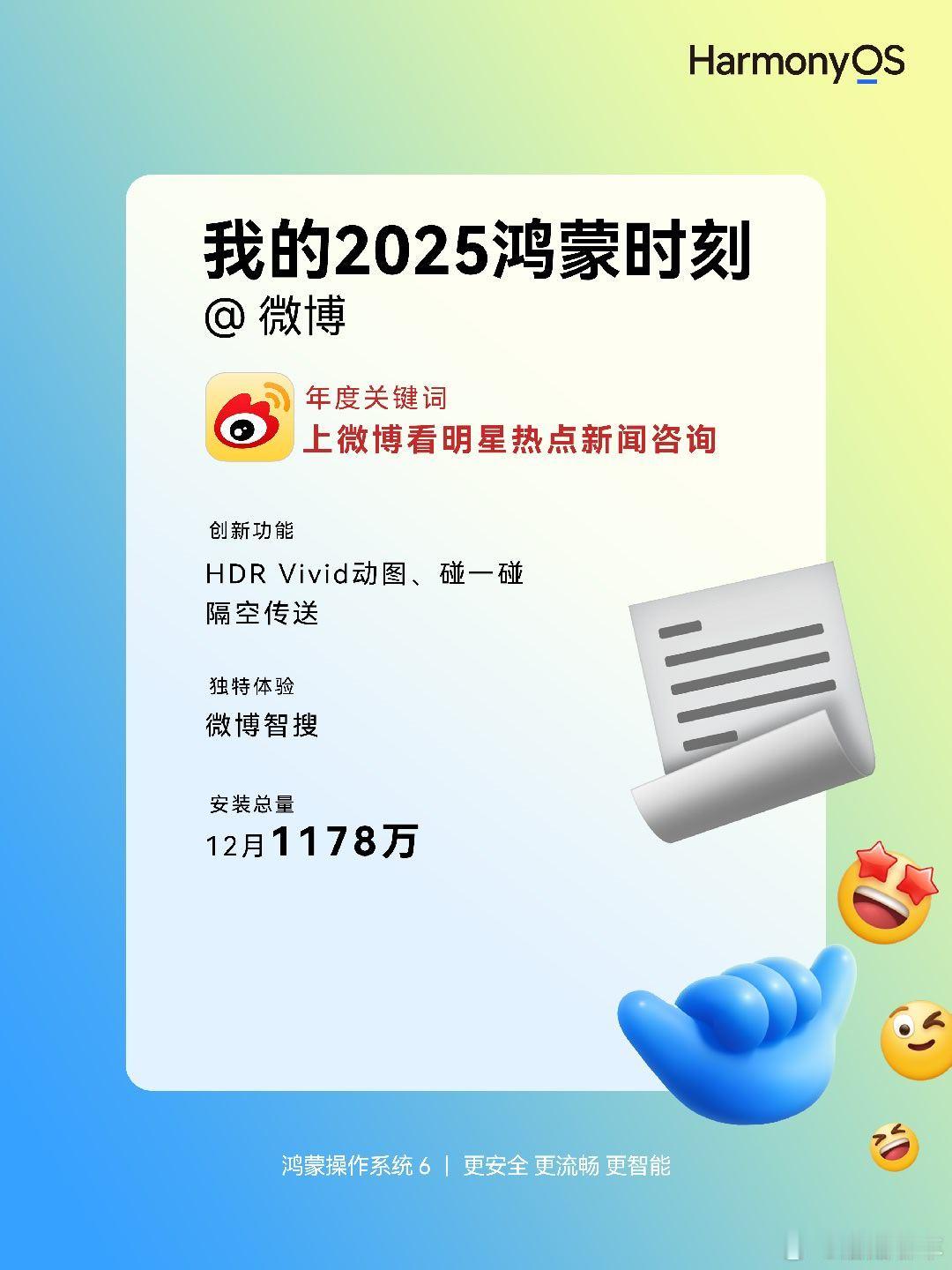 多款app晒鸿蒙年度成绩单 12月29日,众多生态伙伴齐发年度适配总结海报,感觉像是一场无声的联合宣言。过去一年,我们见证了鸿蒙操作系统 6的发布,也见证了它迅速搭载在旗舰新机上,更见证了生态从“有没有”到“好不好”的质变。此前的《鸿蒙星光盛典》,早已将这份质变的成果展现在大众眼前。现在打开应用市场,超35万的应用和元服务,足以覆盖绝大多数人的数字生活。日均十几万设备新增的背后,是无数用户用信任投出的票。当一个系统开始自己产生强大的吸引力时,它的未来就真的稳稳当当了!鸿蒙生态年终总结