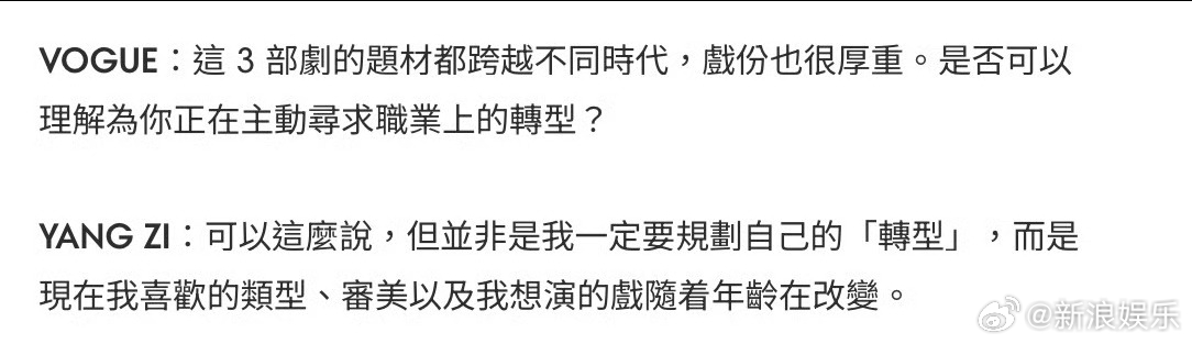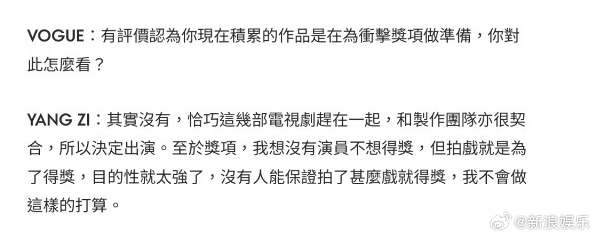 杨紫回应积累作品冲奖杨紫回应寻求转型 登港版《VOGUE》开年刊封面,采访内容清醒又通透: