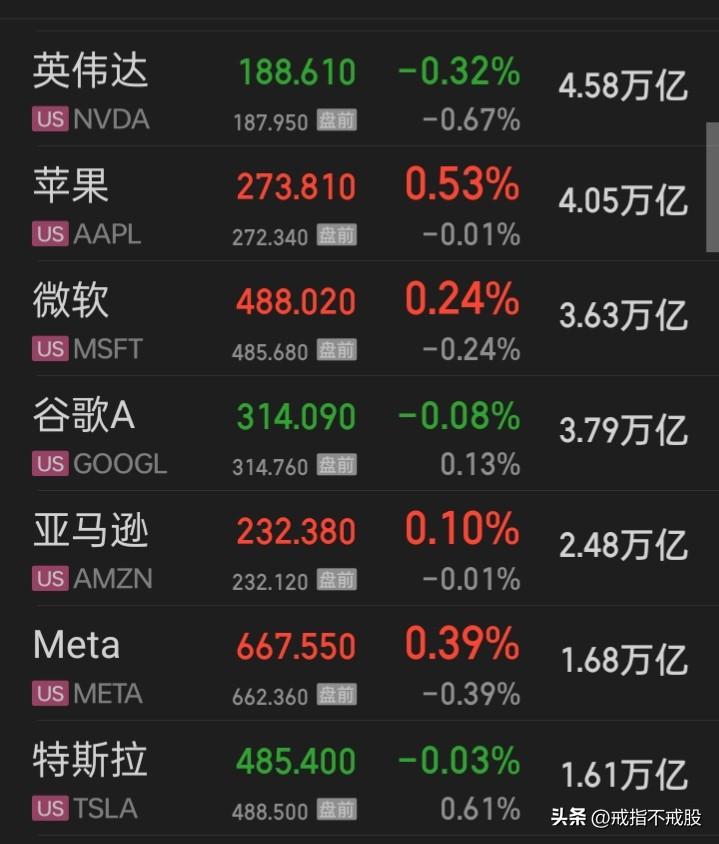 【2025.12.24】“圣诞节”来临证券交易所提前收市,在美东时间下午1点休市,第三季度美国国内生产总值环比按年率计算增长4.3%。美三大指齐低开高走收盘齐涨,“固废处理、抗癌医药、基因编辑”等板块概念涨幅在前,“英伟达”跌0.32%,“台积电”涨0.70%,“甲骨文”涨1.17%,“美光科技”涨3.77%,“希捷科技”涨1.14%,““稳定币第一股ICircle”跌0.21%,“纳指金龙中国”跌0.07%,“阿里巴巴”跌0.71%,“拼多多”涨1.23%,“36氟”跌2.56%,“九洲大药房”涨3.24%,三大美指,美元、离岸人民币、黄金、原油涨跌幅表现 【道指】 收48731.16,涨0.60% 【纳指】 收23613.31,涨0.22% 【标普】 收6932.05, 涨0.32% 【美元指数】 报97.945, 涨0.00% 【离岸人民币】报7.00848, 跌0.15% 【纽约金主连】报4505.4, 跌0.01% 【美原油主连】报58.40, 涨0.03%
