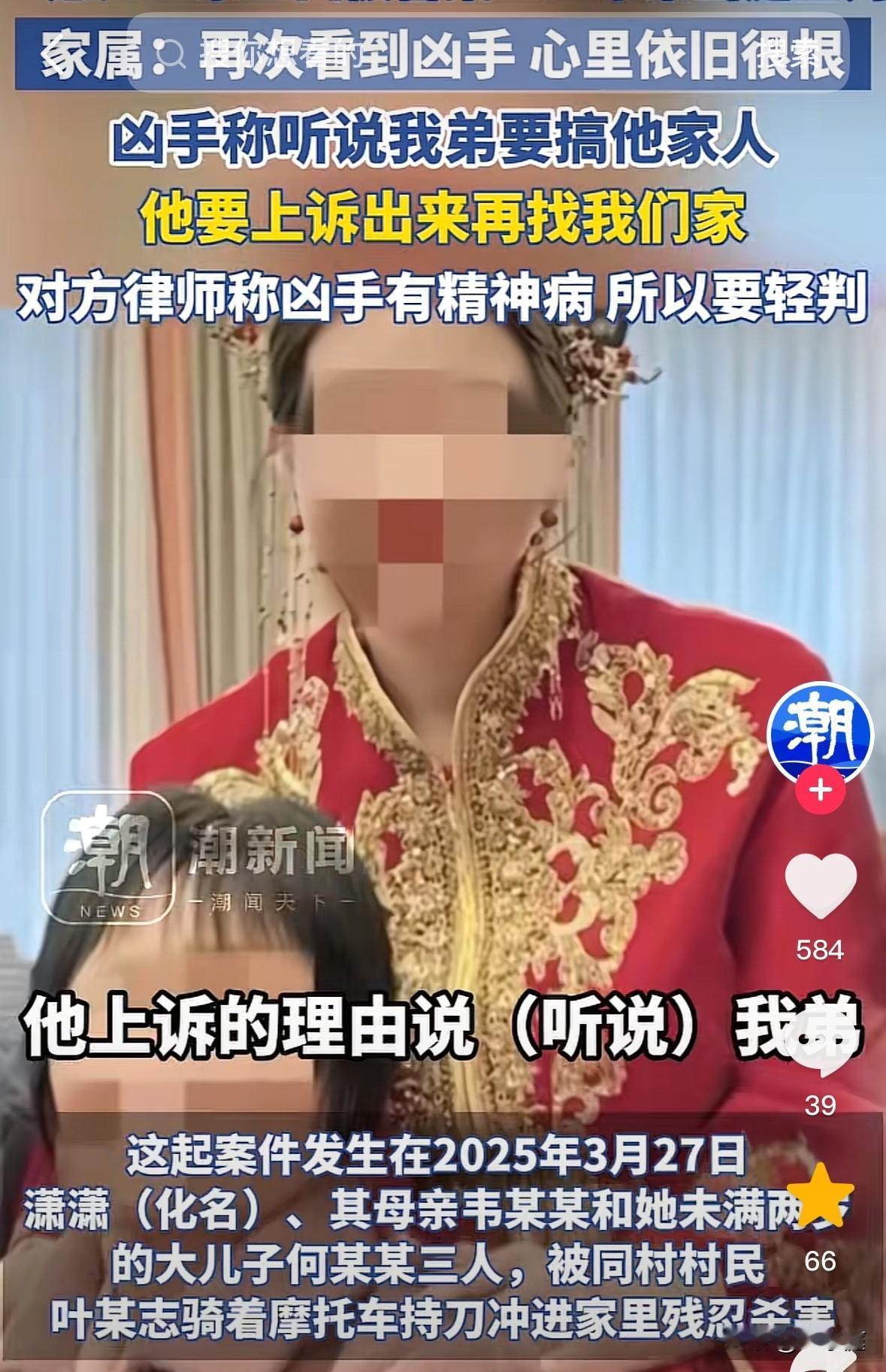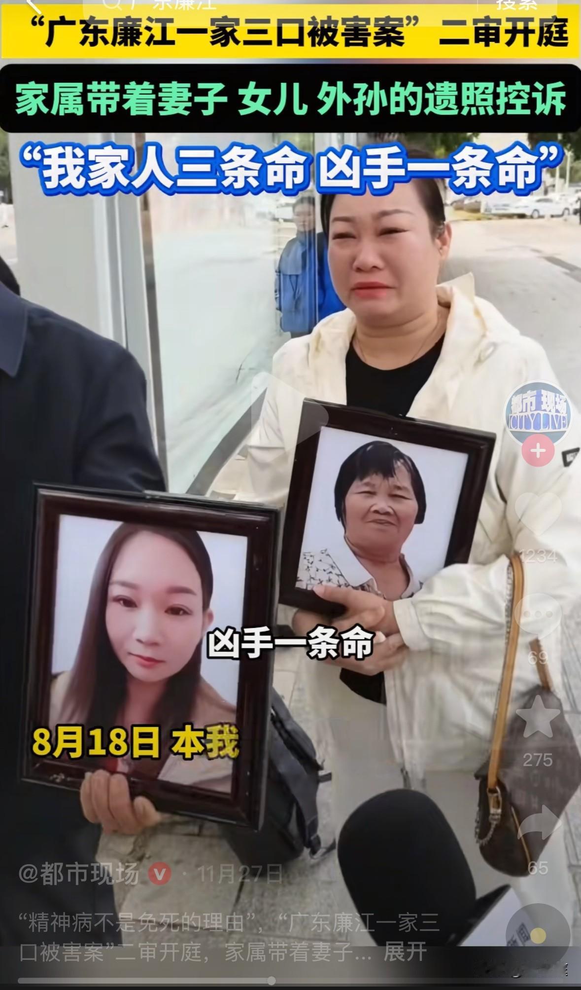 精神病不是免死的理由!广东廉江砍死祖孙三人的叶德志被判死刑后,还在妄想有朝一日可以出来,于是提出了上诉,好在,他的上诉被驳回了,并且,二审维持了死刑原判。 叶德志,廉江市东涌村人。悲剧发生前,他已经服用了5年治疗精神病的药物。因其家人一直隐瞒着,加上其大多数时间在外打工。所以,村子里的人对此毫不知情! 回到老家后,叶德志一直臆想同村的叶某要加害于他,事实上两家人原本关系很好,根本没有那回事,而叶德志同叶某不仅是从小玩到大的发小,也是同学。 2025年3月27日晚上,叶德志骑着摩托车,手持两把菜刀走进了叶某家。 彼时,叶某压根不在家里!留在家里的只有几位老幼妇孺。一声声惨叫后,叶某的老母亲,还有其回娘家的妹妹及大外甥三人被杀害! 叶家当时就只有5个人在家,3岁的小侄儿和尚在襁褓之中小外甥因在房间睡觉,没有被叶德志发现,从而有幸逃过一劫。 做完这一切,叶德志还不忘回头望一眼,而后大摇大摆的离开了现场,回到了家中。 被抓捕以后,他被鉴定出了精神分裂症,案发当天属限定刑事责任能力人。 叶德志提前准备了凶器,案发后想要畏罪自杀。如此可见,其未完全丧失辨认能力和控制能力,加上罪行极其严重,于一审被判死刑! 叶德志获死刑后,仍在臆想叶家会对他的家人下手,想要出去找他们。于是,他提出了上诉,想要以此获得轻判。好在,二审最终维持了原判。 从这个案子可见,精神病不是免死的理由!叶德志终于为他的所作所为付出了代价! 如今,逝者已矣,在这个事件背后,值得大家深思的一点是:该如何去避免类似悲剧的发生? 目前最好的办法,其实还是要靠家属的严加约束。 一个家中,如若有这种病人,家属必须要担起更多的责任心! 不要将他们的病情刻意隐瞒周边邻居,有必要实话实说,提醒街坊邻居们注意防范!发现情况严重时,要带他们及时入院治疗,而不是放任不管! 叶家原本多好的一个家庭啊,可因为一个叶德志瞬间破碎了。那些沉浸在悲痛之中的家人们,一辈子都很难走出来了![祈祷][祈祷][祈祷] 信息源:(都市现场、潮新闻)