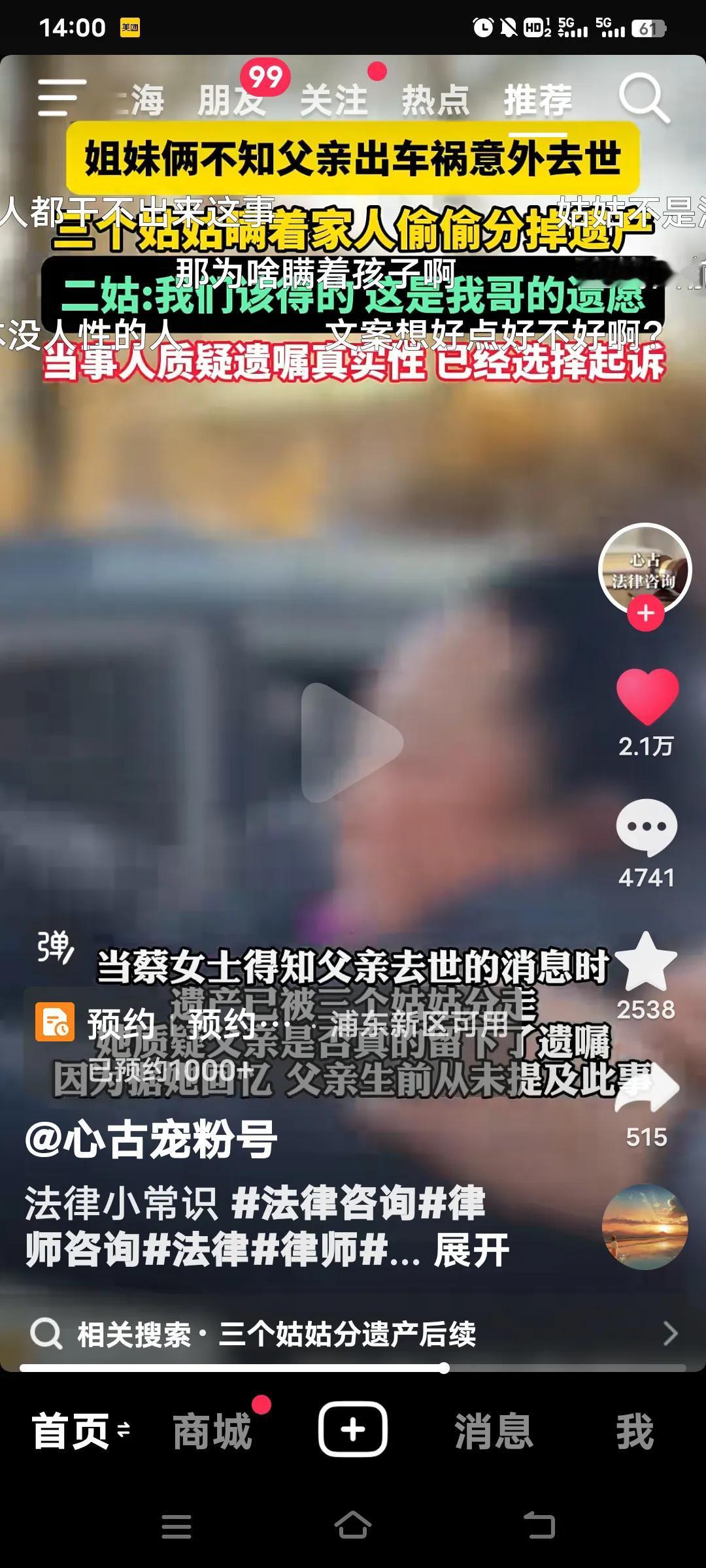 看到姐妹俩还不知父亲离世,遗产却已被姑姑瓜分,着实令人唏嘘不已。设想一下,连父亲最后一面都没见着,该是多么凄惨。 近日,河南商丘的一起遗产纠纷事件引发了广泛关注。据河南的蔡女士向记者透露,她的父亲早在今年1月便已去世,可几个姑姑却在她和妹妹毫不知情的情况下,将父亲的遗产分掉了。 蔡女士表示,她的父母早年离异,她和妹妹是跟着爷爷奶奶长大的。这些年虽与父亲有来往,但从未听父亲提过立遗嘱的事,怎么能这样呢?更关键的是,她们连父亲最后一面都没见到。 得知父亲去世的消息后,蔡女士质疑姑姑们。三个姑姑坚称“这是她们应得的,称这是哥哥的遗嘱,”只是还没通知老人。每人分了几十万。大姑和三姑坚称是为了贪财,都是老二出的主意,“二姑才是获利最多的人。” 这样的人实在让人无语,为了钱财竟然啥事都干的出来!倘若她们的哥哥缺衣少食,她们会管他吗?肯定会推给女儿。在利益面前,亲情又算得了什么呢? 这也给大家敲响了警钟,亲情需要用心维系,多和家人沟通交流。不然哪天遭遇意外,可能就会留下无法弥补的遗憾,有些东西一旦错过就再也回不来了。 老人去世遗产 遗嘱遗产 遗产归谁 家庭遗产之争