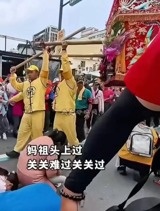 妈祖游行的途中,背着氧气瓶的女孩在祈祷。当众人抬着妈祖金身准备经过人群时,爸爸抱着女孩祈求妈祖为孩子驱除病痛。当妈祖来到面前时,爷爷跪着扶着小女孩的手,让她接受来自己妈祖的祝福。抬轿的小哥屈膝用力,只为女孩离妈祖更近一点。整个过程接近一分钟,抬轿小哥也累的满头大汗。 当医学已无法拯救时,或许信仰是最后一道希望。结束后爷爷不停的祈祷,等待妈祖从头上跨过。妈祖头上过,关关难过关关过。两美好瞬间。当医学与科技都无力回天时,信仰是他们最后的防线。关关难过关关过,步步难行步步行。