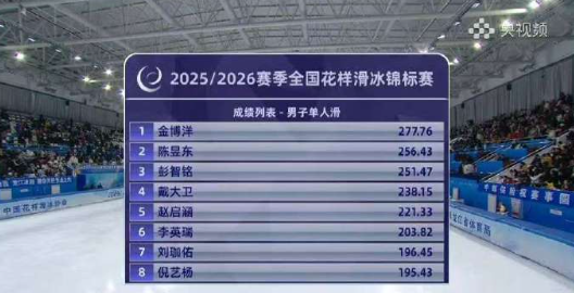 男单自由滑结束,金博洋总分277.76分获得冠军,加上中国杯232.81分,选拔