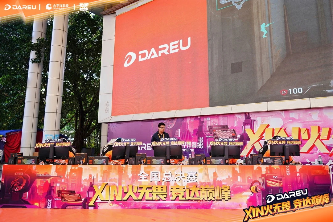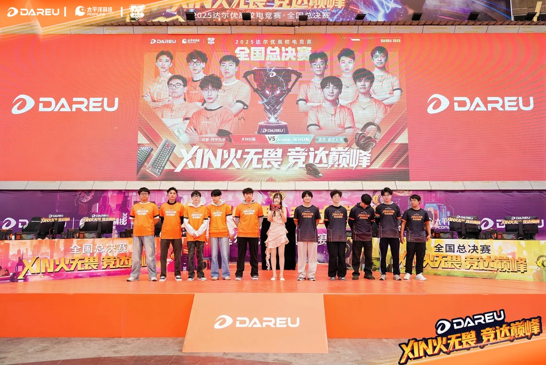 2025达尔优高校电竞赛·全国总决赛现场气氛燃到爆炸!决赛双方是武汉大学 vs 西华大学,另外还有零距离外设体验区,键盘耳机实测+专业调校讲解,简直玩家天堂~快来一起嗨!