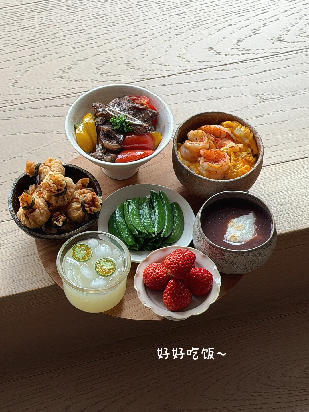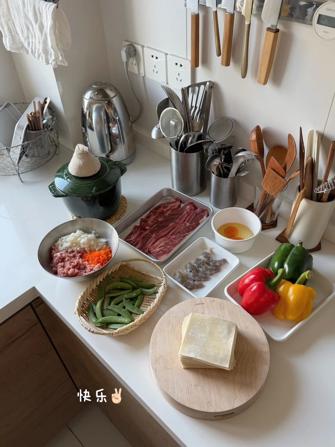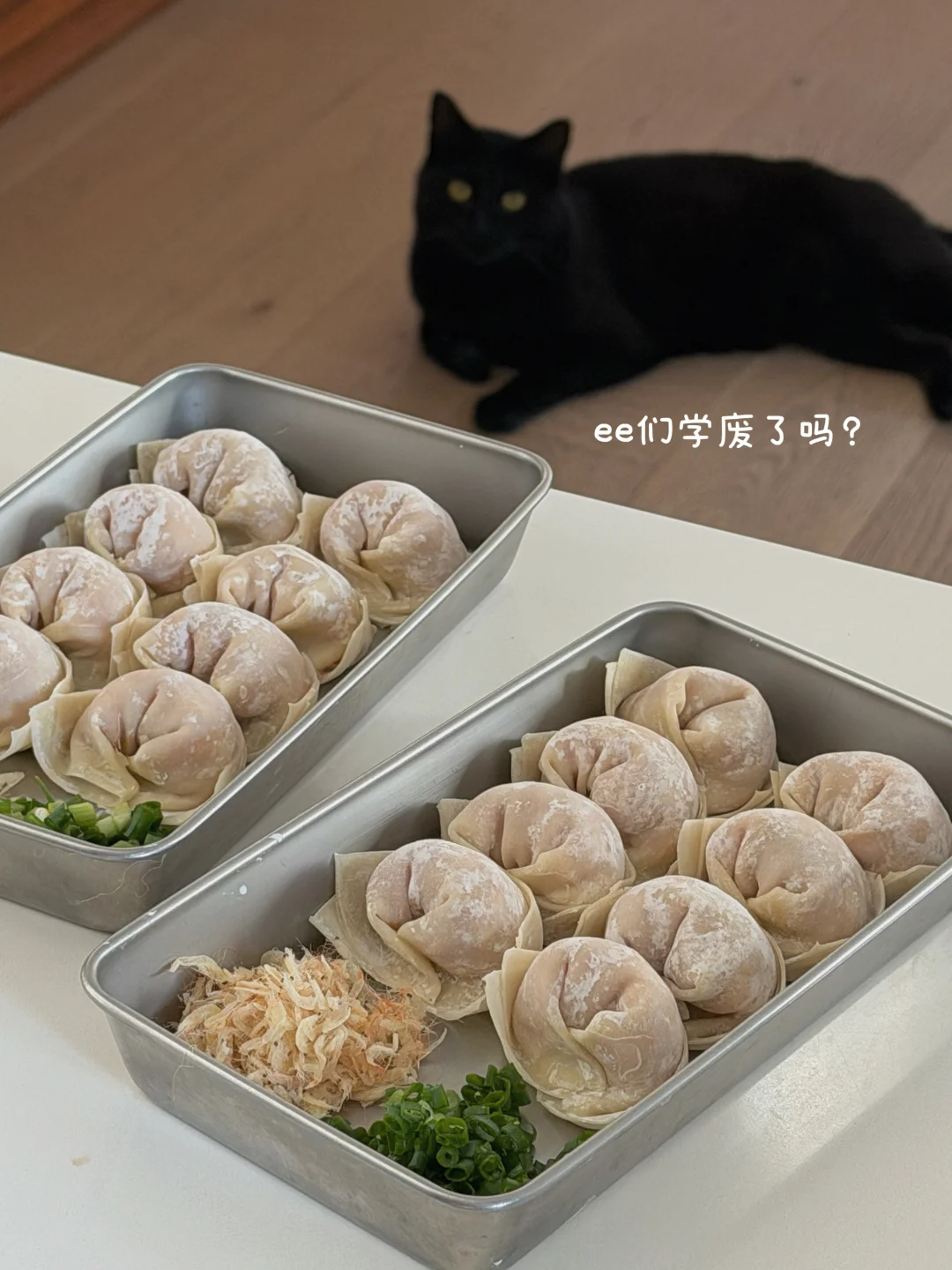 还包了猪肉马蹄飞鱼籽云吞当早餐🥟