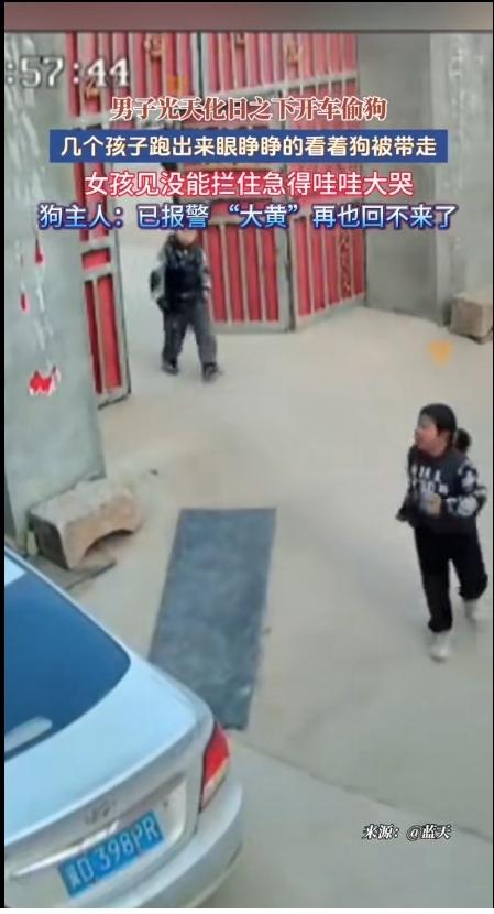 太坏了!河北一男子光天化日开车偷狗,几个孩子跑出来,眼睁睁地看着狗被带走。女孩见没能拦住,急得哇哇大哭。网友:这偷狗的真缺了大德!没有听见孩子哭得多撕心裂肺吗?难道良心不会痛? 12月28日,河北一个院子里发生的事儿,把网友们都心疼坏了。一个男的开车过来,当着几个孩子的面,麻溜地把叫“大黄”的狗塞进后排座位,那架势嚣张得很,一点儿顾忌也没有。 孩子们听到狗叫的声音,赶紧跑出来拦,其中一个小丫头急得哇哇大哭,可孩子那点力气,哪能挡住偷狗的?只能眼睁睁看着天天一起玩的大黄被抢走。 狗主人知道后立马报了警,红着眼说:大黄怕是再也回不来了。 在孩子眼里,大黄哪是只狗啊,那是一起疯跑的小伙伴,是能听自己说悄悄话的好朋友。在主人心里,大黄就是家里的一口人,是默默陪着过日子的亲人。 这偷狗的不光偷走了一条命,还把孩子心里的美好给戳碎了,也端走了一家人的情感念想。大白天干这种偷鸡摸狗的事,不光犯法,更寒了普通人的心。 这事一曝光,网友们都气炸了,评论区全是怒火和心疼:“看孩子哭的模样,我心都揪紧了,偷狗的也太缺德了!” 还有的网友说:“大黄是孩子的童年啊,这人咋能当着孩子的面干这种丧良心的事?” 也有的网友说:“必须查到底!偷狗哪是偷宠物,分明是偷人家家人,太可恨了!” 咱就盼着警察能赶紧把这人找出来,让他受受教训,也希望这种坏心眼的事,再也别伤着无辜的毛孩子和单纯的孩子心。 针对此事,你有什么看法呢?