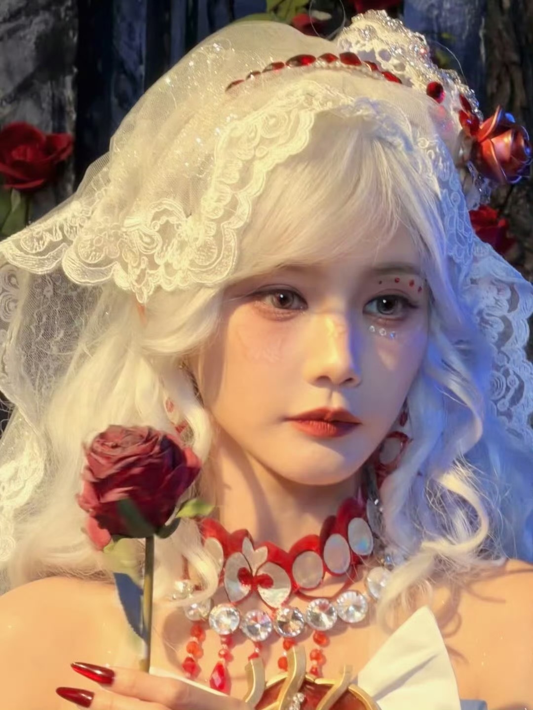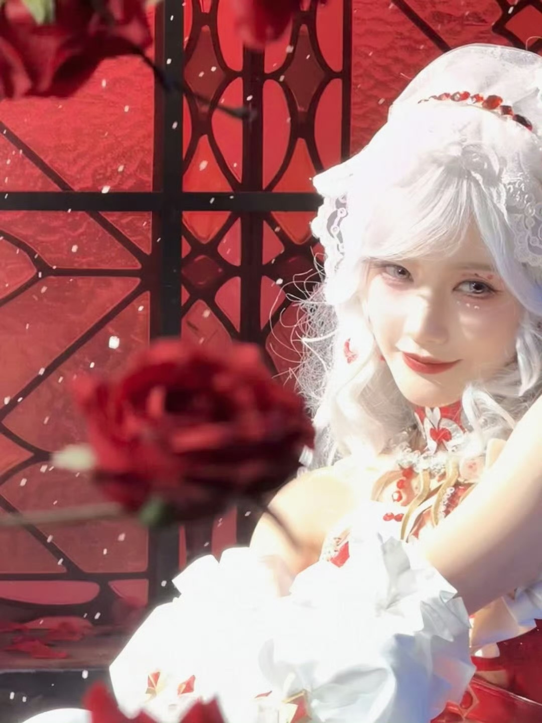 李一桐cos暮色玫影白玫瑰搭配红玫瑰,现实版洋娃娃来了有这张脸你拿什么输!