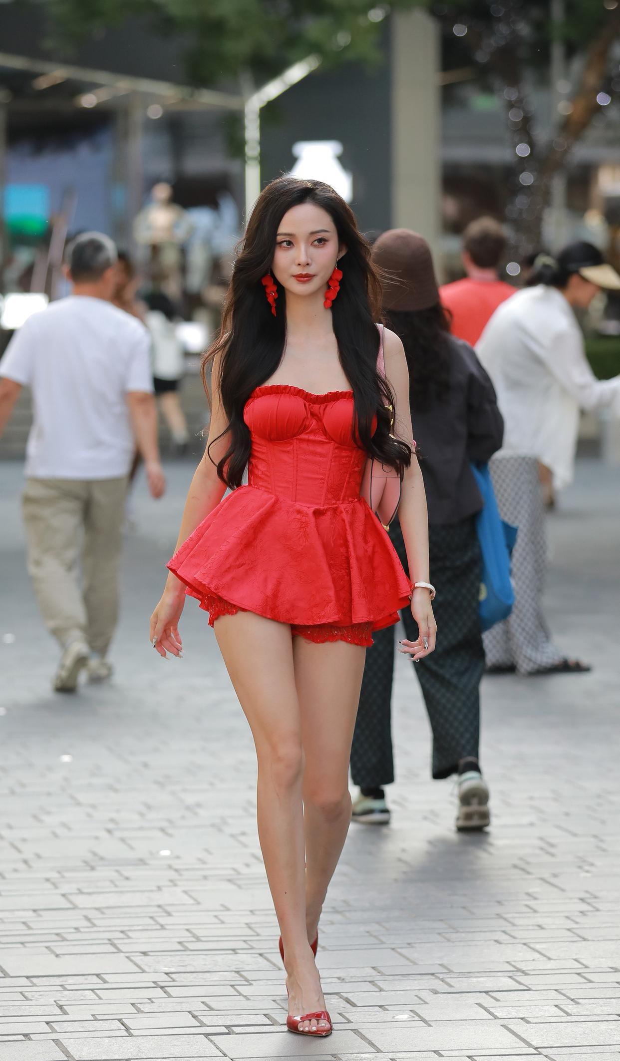 红裙摇曳,是街头最热烈的浪漫❤️