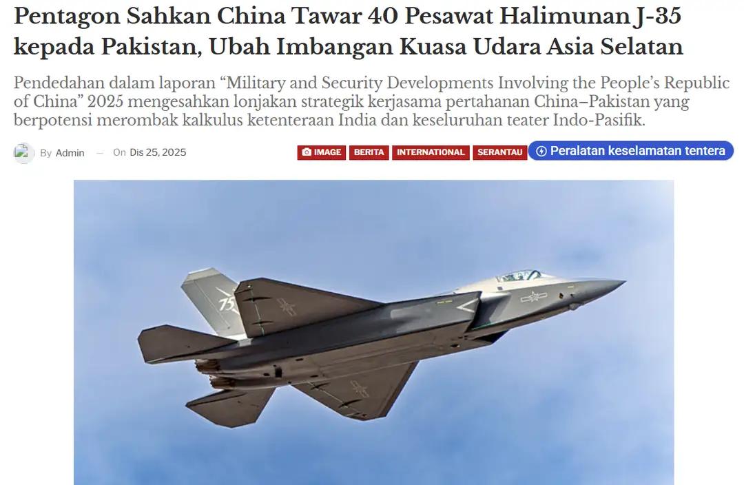 美军称随着歼35出口巴基斯坦F16将彻底在巴军被边缘化 据今年美国延迟发布的《中国军力报告》称,随着36架歼10CE和后续的40架歼35AE的交付,巴基斯坦将在2027年成为首个拥有五代机的伊斯兰国家。也将彻底改变南亚及中东的空中军力的平衡。巴军己同中方达成协议订购40架歼35AE,最快将于27年初交货。 看来美国的情报机构对全球的军售情况都是十分关注的。但愿这次中国五代机的首单不要被美国搅黄。