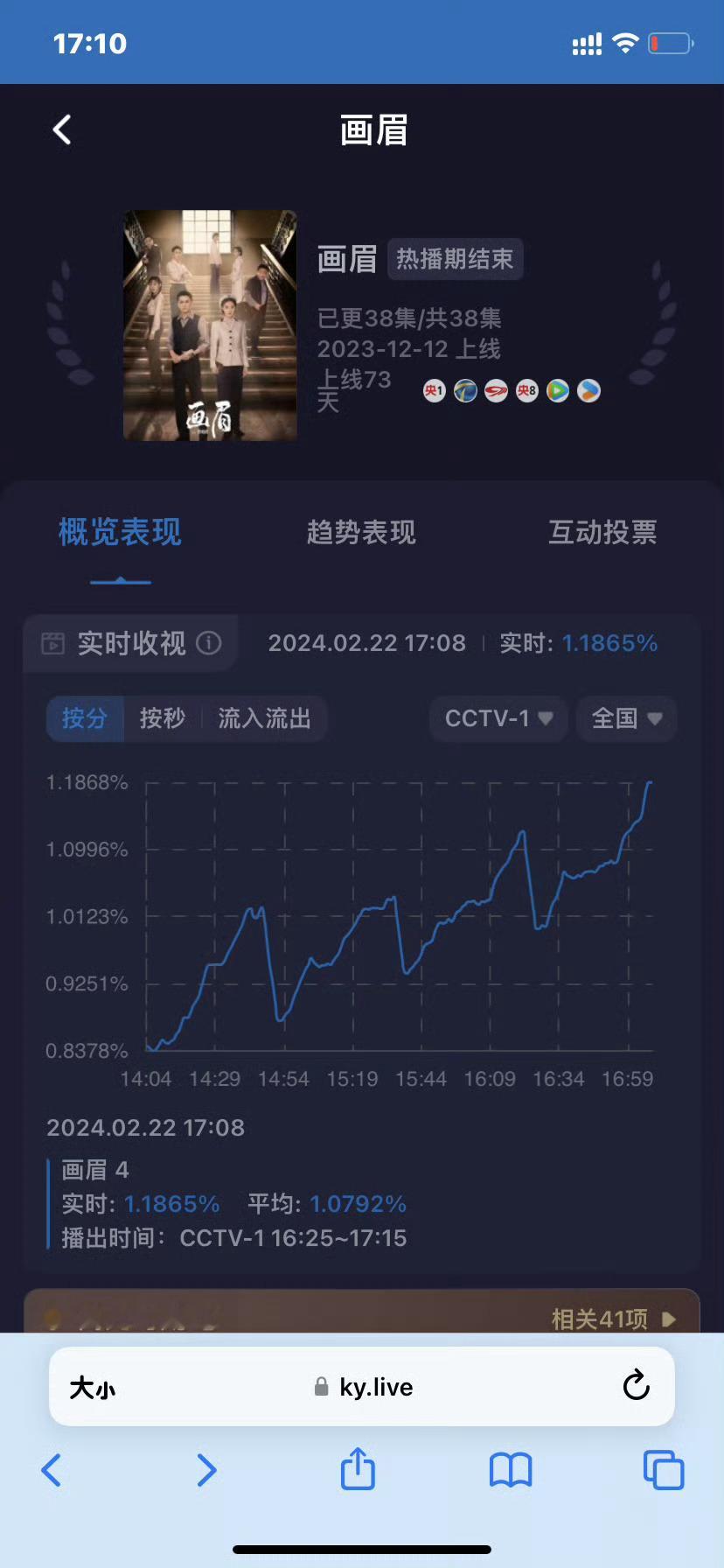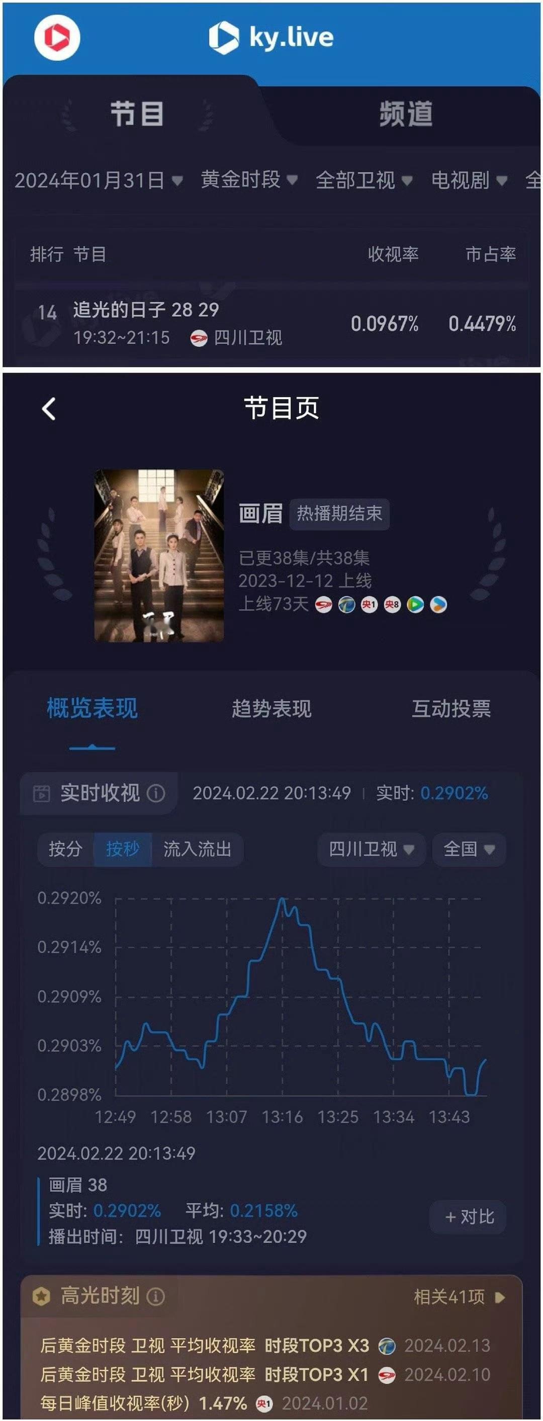 刘学义兰香如故 ❄️刘学义踏雪寻踪 这个重播的画眉实在太强,央妈上午档全国第一、后黄金收视太好直接提到次黄后面单集记入CVB稳稳破一,央爸下午档酷云广告没下过0.8、1.5轮直接拿下1.7887峰值,卫视后黄金第一,卫视凌晨档市占断层,两年后解锁央视新频道午夜时段首播全国第二,在常年不计入cvb的川卫收视好到今年黄金档又直接重播了一次