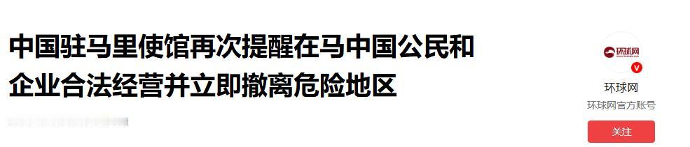 中国大使馆12月27日凌晨发文。要求中国公民立即撤离!!!看见这个新闻的时候,我还以为是日本那边的。毕竟中日这事已经闹了那么久,真到了不可挽回的地步,也都正常。点开一看是马里的,位置在布谷尼大区。 其实早在这次紧急通知前,驻马里大使馆已经提醒过好几次了。核心原因很直白,就是当地的安全形势彻底失控了。恐怖分子像是盯上了在布谷尼大区的中国公民和企业,频频动手,烧设备、绑人,一点都不留情面。 有太阳能农场被付之一炬,还有不少同胞被绑架,至今都有没被解救的。更让人揪心的是,这些袭击不是随机的,而是有组织的行动,目标明确,手段也越来越狠,甚至会用无人机侦查,就为了精准找到下手对象。 布谷尼大区会成为高危地带,和它的地理位置、资源情况密切相关。这里靠近马里和布基纳法索的边境,地形复杂,山里、沙漠里都容易藏人,马里政府军根本管不过来,恐怖分子打完就跑,一点办法都没有。 再加上这里有不少矿产,很多中国企业和公民来这里做采矿、修路之类的生意,在动荡地区,有产业就意味着有“油水”,自然就成了被觊觎的目标。 大使馆这次的通知里,有句话特别关键,就是强调必须合法经营。这可不是随便提的,实在是有前车之鉴。有些同胞想着多赚点钱,没办齐当地手续就开工,结果出了事之后,马里政府那边以非法经营为由,根本没法提供保护。 这时候才明白,合法合规不是麻烦事,是在异国他乡的保命符啊!所以通知里说得很清楚,那些没手续、没得到当地安全保护的人,必须赶紧撤,要么去马里首都巴马科这种相对安全的地方,要么直接回国。 可撤离哪有嘴上说的那么容易?对在当地做生意的人来说,这简直是两难的选择。不少人在这边开厂子、搞项目,手里全是重型设备、基建材料,想拉走,不仅要花大价钱找车队,还得提前排期,更怕路上遇到袭击;要是留在那,大概率就是被抢被烧的下场,血本无归。 还有些人分散在偏远的矿区,手机没信号,连大使馆的撤离通知都收不到,想集结都难。就算顺利赶到机场,机票也早就被抢空了,中转的航线也全满,一票难求。 有人实在没办法,就想走陆路去邻国,结果沙漠里的走私客坐地起价,开口就要八千美元,还只保送到边境,路上死活不管。 可能有人会问,为啥不组织官方统一撤侨?其实这和当地的复杂情况有关。马里的局势乱得很,不光有恐怖分子,还有各种武装势力,公路被分割成一段一段的,就算是官方车队,也没法保证绝对安全。 而且人员太分散,需求也不一样,有的老人小孩行动不便,有的丢不下资产不愿走,统一调度难度极大。所以大使馆能做的,就是开通协助通道,协调华人商会组织临时车队,配备安保人员护送,还在沿途设补给点,尽可能帮大家减少风险。 同时把各种求助电话都公布出来,马里的报警电话、使馆的领事保护电话,还有外交部的全球热线,就是怕大家遇到事的时候叫天天不应。 很多人这时候才意识到,马里这地方的混乱,远比我们想象的严重。它不是单纯的穷,而是穷加上资源诱惑,再加上政权不稳,各种矛盾搅在一起。明年马里还要选总统,照现在这势头,局势大概率会更乱。 当地的特种部队也就敢在大城市活动,到了布谷尼大区这种偏远地方,根本没人管,老百姓只能自己求自保。 有些当地人会建议找部落长老调解关系,但咱们去做生意的同胞,根本不懂人家的规矩,怕说错话反而惹麻烦。新搞的监控预警系统倒是有用,可很多小厂子根本装不起,只能眼睁睁看着风险越来越近。 现在再回头看大使馆的凌晨通知,就懂那背后的急切了。不是迫不得已,不会这么直白地催促大家撤离。这也让大家看清一个道理,无论身在哪个国家,遇到危险时,背后有祖国的提醒和协助,真的是最大的底气。 那些觉得“撤侨离自己很远”的人可能没意识到,随着越来越多中国人走出国门做生意、谋生活,海外安全早就不是小事了。 说到底,这次的撤离提醒,不光是给在马里的同胞提个醒,也是给所有人敲个警钟。异国他乡的机会再多,也不如平安重要。大使馆能做的是预警和协助,但真正的安全,还得靠自己绷紧神经,遵守当地规矩。 不知道大家有没有想过,要是换成自己在那样的环境里,会果断撤离还是舍不得多年的基业?对于海外同胞的安全保障,你还有哪些期待?欢迎在评论区聊聊你的看法。