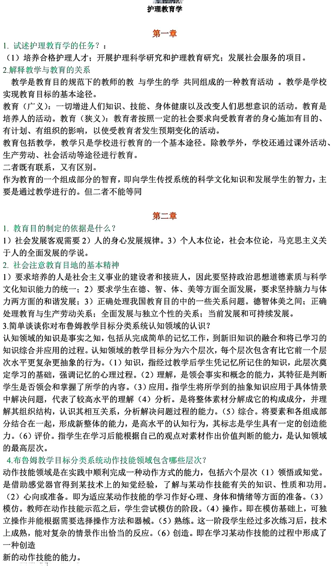 护理教育学 护理教育学笔记 护理教育学复习 护理教育学期末 护理教育学大题 护理教育学简答题 护理教育学复习资料 护理专业 护理教育学知识点 护理教育学试题及答案