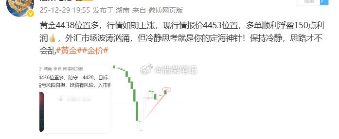 黄金4438位置多,现行情上涨至4467位置,多单已浮盈290个点,护利减持,看清趋势的方向,跟随我们的步伐,让你在波动中稳健获利,轻松驾驭市场!黄金金价