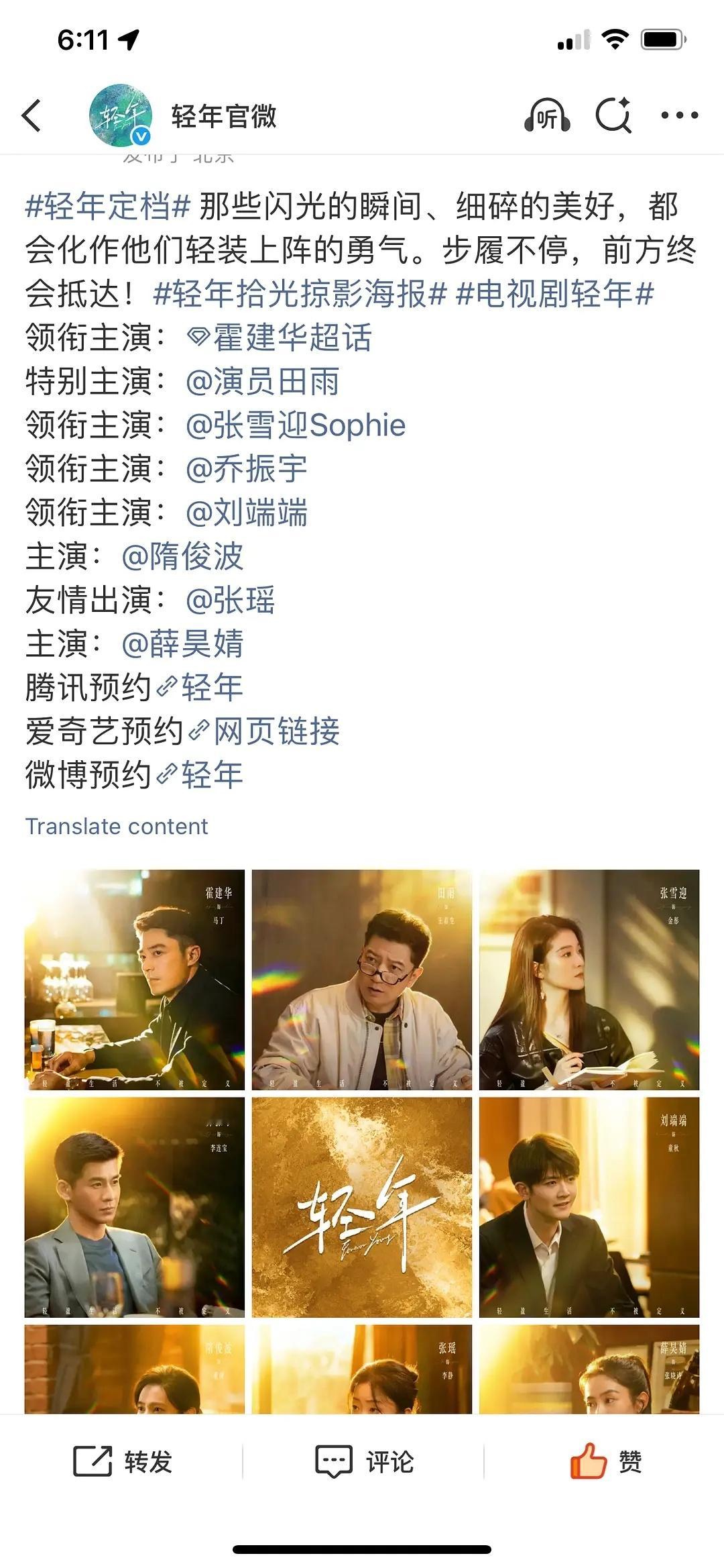 霍建华新剧轻年30号晚上六点空降腾讯爱奇艺播出