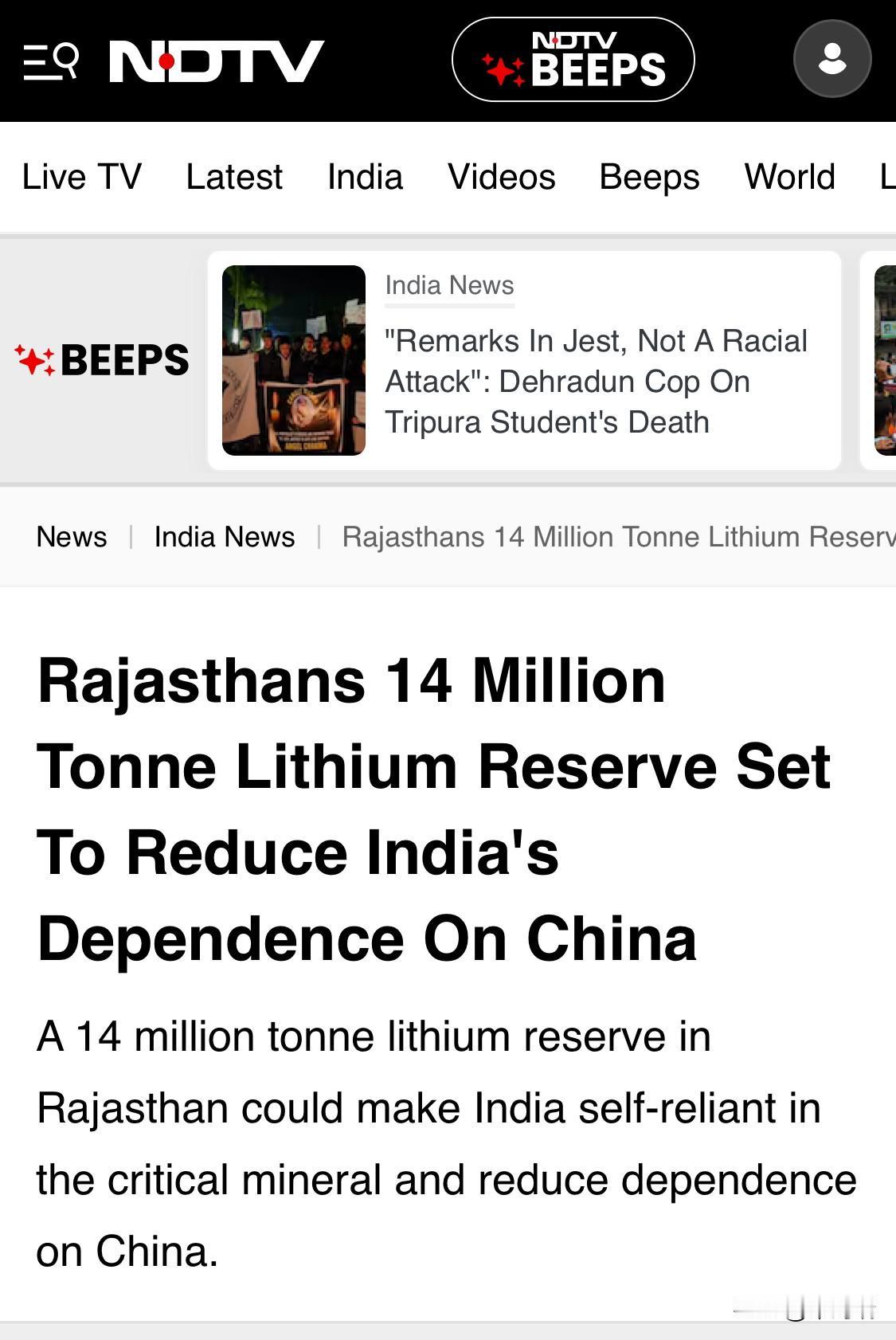 重大新闻:在印度拉贾斯坦邦纳高尔(Nagaur, Rajasthan)发现了1400万吨锂矿储量。这将使印度在这一关键矿产方面实现自给自足,并减少对中国的依赖。 据报道,该锂矿储量估计约为1400万吨。这被认为远大于之前在查谟和克什米尔邦(Jammu and Kashmir)发现的590万吨储量。 矿藏位于拉贾斯坦邦纳高尔地区的德加纳(Degana)雷瓦特山(Rewat Hills)附近。该地区以前以钨矿开采而闻名。 锂被誉为“白色黄金”,是电动汽车(EV)电池、笔记本电脑、手机和核反应堆等可充电设备的关键原材料。印度目前约70-80%的锂需求依赖进口,其中大部分来自中国。 矿山的开采预计将为拉贾斯坦邦创造大量的就业机会和额外收入,并有助于推动印度的电动汽车产业发展。 印度矿业部已启动锂矿的拍卖程序,旨在加速国内锂的生产。然而,一些早期的报道(2023年5月)曾被印度地质调查局(GSI)称为“毫无根据且具有误导性”,指出当时钻探工作仍在进行中,资源量尚未最终确定。最近(2025年9月)的报道则确认了矿床的存在,并启动了拍卖程序。 这一发现有望使印度成为全球清洁能源革命中的重要竞争者。