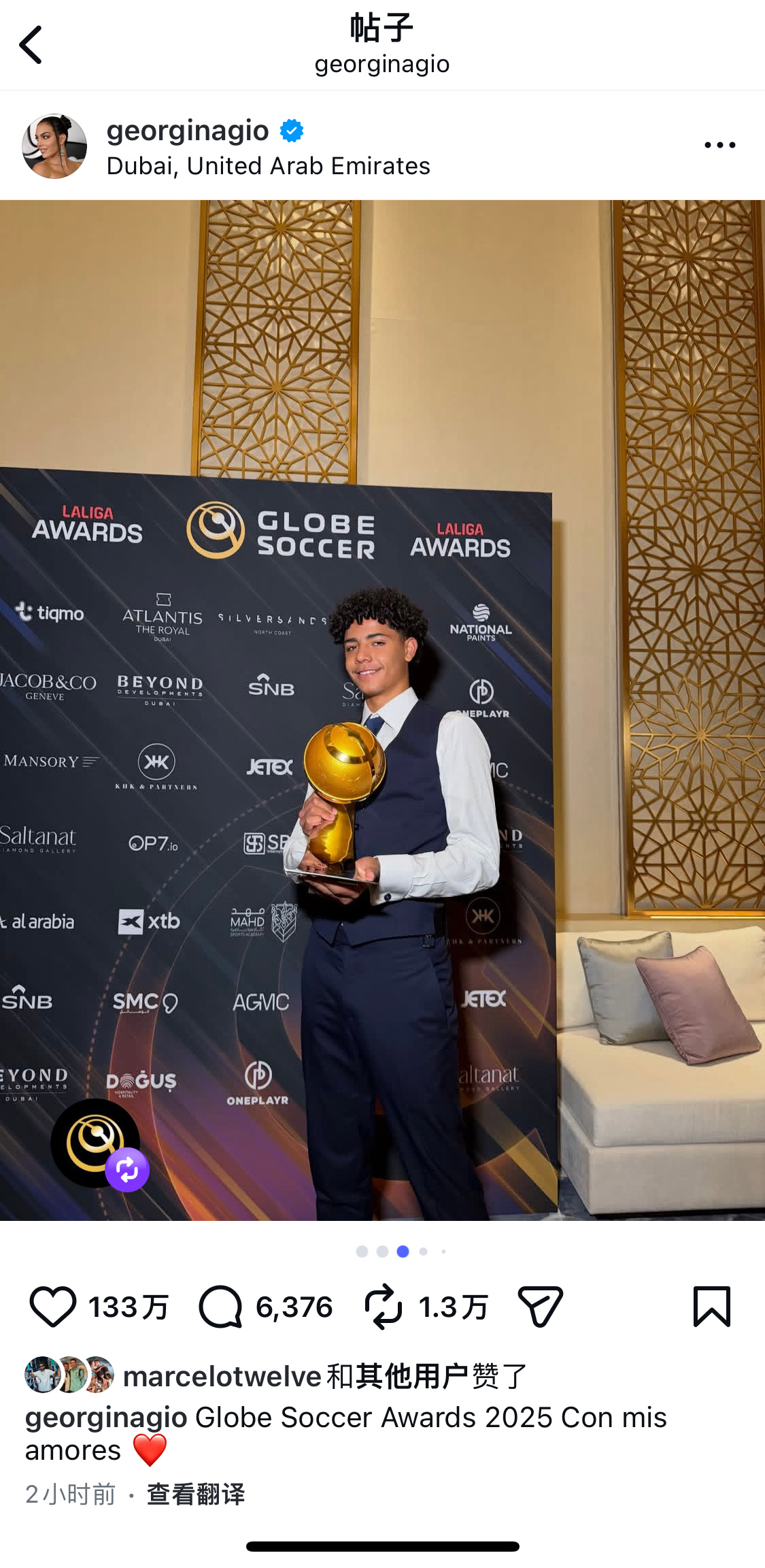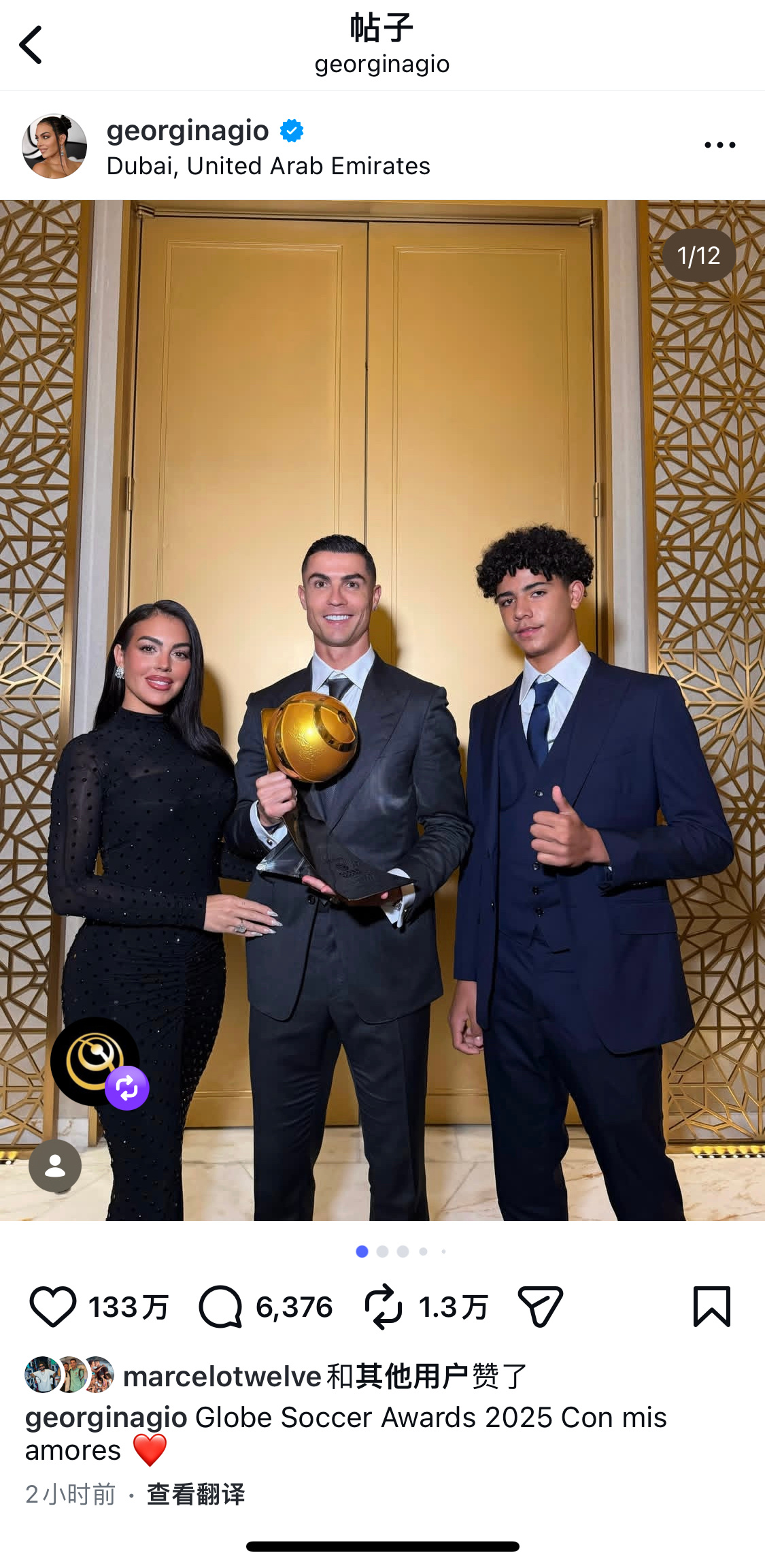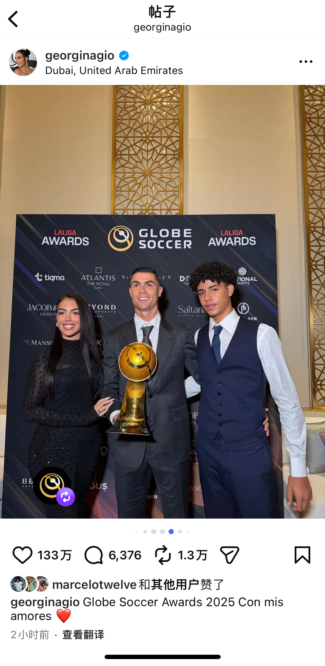 罗家父子都好适合穿西装啊啊C罗当选环足奖年度最佳中东球员