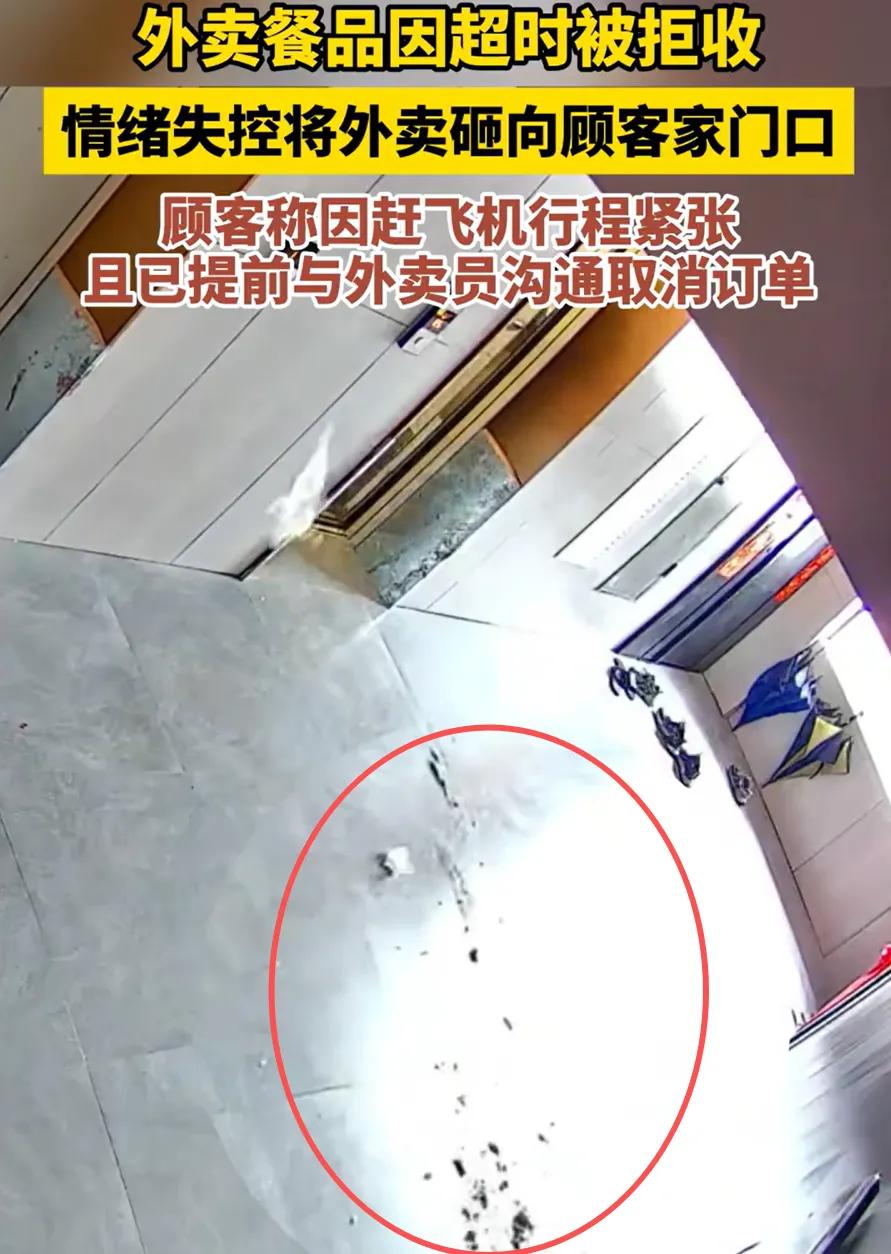 吵翻天!广东,一女子点了份外卖,但因为要赶飞机,骑手超时没有按计划时间送到,女子就拒收不要了,可令她没想到的是,骑手发现家里没人后,竟然临走时直接把外卖砸向了客户家门口。到底谁对谁错,这也引起了不少讨论 监控画面里看得清清楚楚,骑手终究是没能赶上约定的时间,赶到住户家门口时,顾客早已奔赴机场。一通电话沟通,得到的只有明确的拒收答复。 没有半句争执,也没有多余的交涉,骑手的情绪瞬间就绷不住了。抬手就将手里的外卖狠狠砸向门板,又重重摔在地面,好好的一餐饭,当场变得狼藉不堪。 女子事后调出监控发布到网上,只说自己因赶飞机无奈拒收,从没想过会换来这样的报复式举动,随后便向平台反馈等待处理。这段视频一出,评论区直接炸开了锅。 有人站在顾客这边,直言哪怕是同行,也觉得骑手理亏。超时就是服务出了纰漏,顾客有包容的情分,更有拒收的本分,规则赋予的权利,旁人没资格指摘。 也有不少人替骑手抱不平,觉得顾客明知要赶飞机,偏要卡点点外卖,本身就有思虑不周的问题。骑手路上的堵车、商家的出餐慢,都是不可控的事,一句拒收,亏的是骑手的餐费和时间。 其实抛开所有情绪和立场,这件事的对错,本就泾渭分明。 顾客有随心点外卖的权利,也有因超时拒收的底气,这是平台规则里明明白白写着的事,无可指摘。谁的生活里,没遇见过算错时间、被意外打乱节奏的时刻,这本就是人之常情。 骑手的委屈和不甘,其实人人都能理解。一趟奔波换来竹篮打水,换谁心里都不好受,这份情绪,值得被体谅。 但体谅归体谅,情绪再上头,也绝不能越过底线。外卖是自己的配送品,住户门口是别人的私人领地,一时的泄愤砸出去的,不只是一份饭菜,更是自己的职业底线和做人的分寸。 他本有无数种合理的处理方式,带回餐品上报情况、联系商家协商退回,哪怕只是默默离开,都算体面。偏偏选了最冲动的一种,让有理的事,变成了无理的过错。 说到底,外卖配送的本质,是规则之下的互相体谅。顾客守着规则维权,骑手按着规则做事,情绪能共情,行为要守矩,这才是化解这类矛盾的根本。