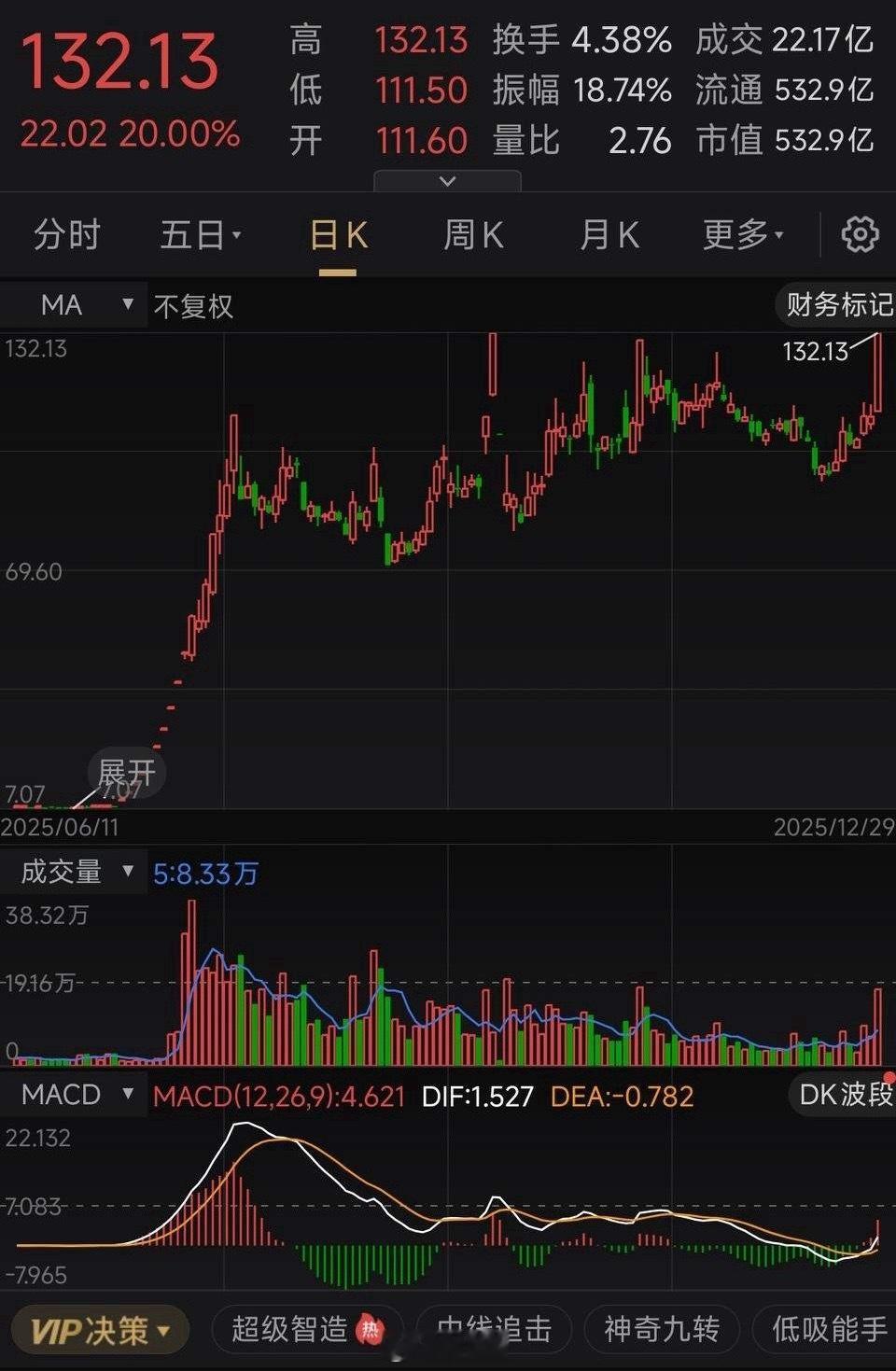 今年的涨幅王非它莫属,票价从年初的6.66元涨到目前132.13元,一年的涨幅高达1984%,2020年上市以来累计涨幅超过52倍!2025年还剩最后两个交易日,而它今年的涨幅到目前为止已经接近20倍了,今天涨停之后它132.13元的票价也创出了上市以来的新高,较年初6.66元票价上涨了1984%。仅仅从7月9日至今它的涨幅就已经达到了1598.33%,更为恐怖的是从7月9日的7.78元涨到8月5日的110.48元,这17个交易日的涨幅就高达1320%。很多人都说业绩是票价的垫基石,没有好的业绩,票价是很难涨得上去的。但是业绩对它来说可以是忽略不计的,因为它上市的这几年业绩并不是很好,它的营收在2021年是20.73亿元,是上市以来最高的一年,今年的营收只剩下12.79亿元;而净利润最高的一年是2020年上市的时候,当时它的净利润有1.19亿元,今年只剩下6055万元。它之所以又在短短的1年时间上涨近20倍,皆因智元恒岳要约收购该公司37%的股份。大家有没有发现这些涨幅超十倍的大牛都是市值50亿以下的,它年初的市值只有26.86亿元,涨了接近20倍后的市值也才532.9亿元,又比如天普从年初的12.59元涨到现在的198.20元,虽然它涨了1574%,但是目前的市值也只有265.7亿元,而今年年初它的市值才不到17的亿元。所以说大牛钟情于小盘股也是有道理的,毕竟20亿市值涨20倍才400亿,如果是200亿涨20倍就是4000亿了。不知道在座的各位对此有什么看法?欢迎在评留下您独到的见解!