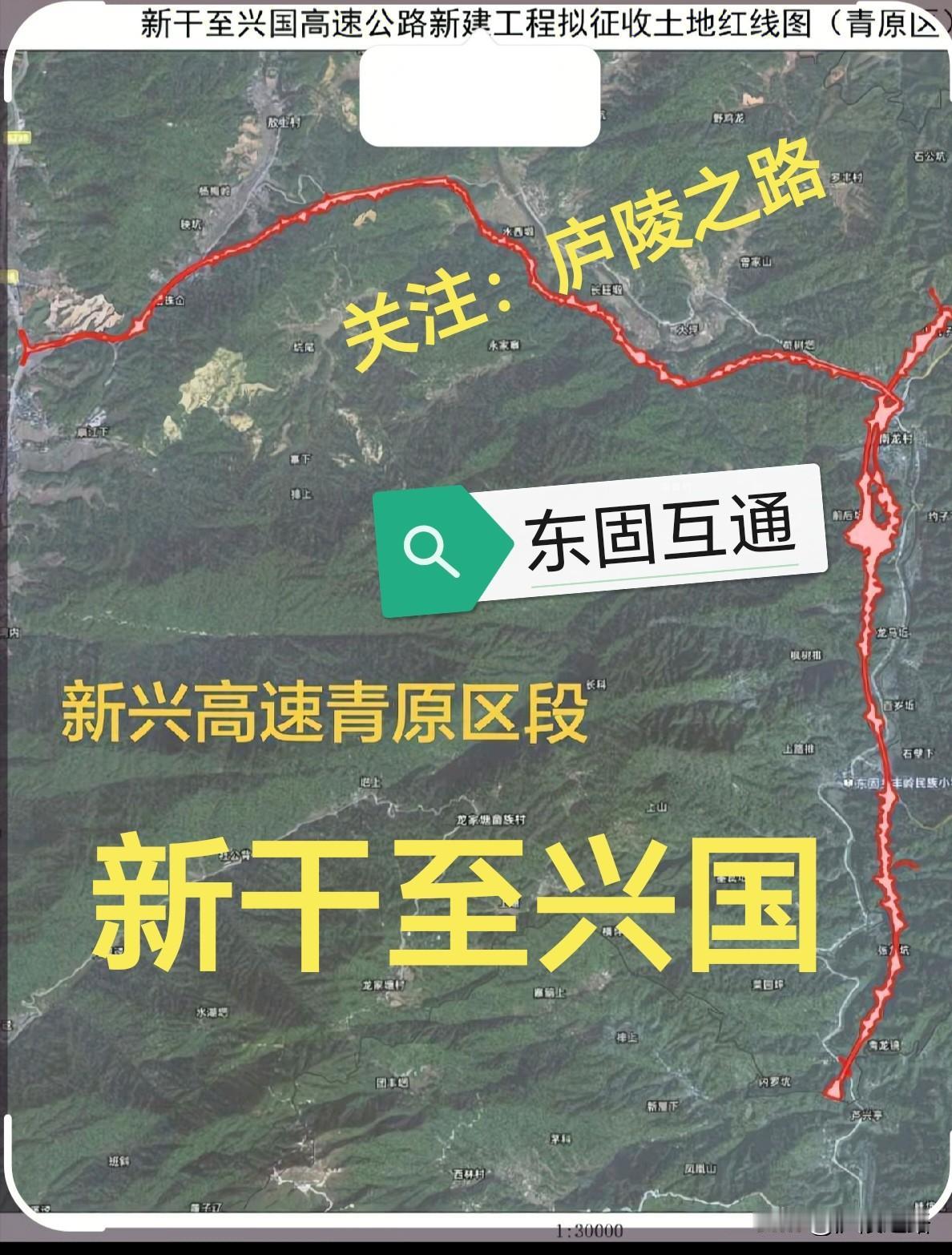 好消息,吉安青原区即将建设一个高速出入口,东固互通闪亮登场啦! 近日,青原区境内的新干至兴国高速公路线路图重磅发布。东固互通及其连接线清晰可见,一目了然。还规划建设了5公里连接线,宛如一条神奇的纽带,紧密对接东固镇中心。 东固互通,坐落于东固镇南龙村以南,角公堂和约子下之间。 东固畲族乡,作为吉安革命红色老区,号称:东井冈。 亦是吉安东固革命根据地,第二、第三次反“围剿”的主战场,至今完整保留着毛泽东、赖经邦等革命先辈的旧居旧址,生态环境优美、文化底蕴深厚、红色资源丰富。