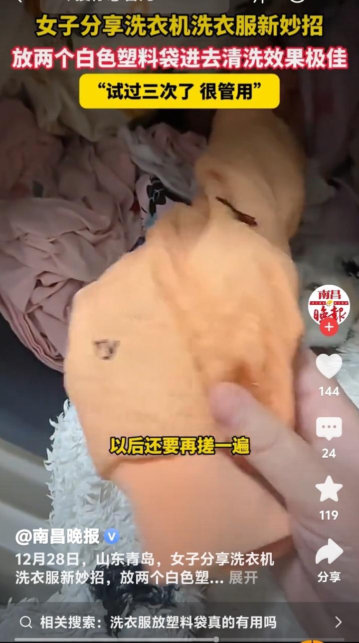 青岛宝妈奇招引爆全网:两个白塑料袋扔进洗衣机,袖口陈年油渍竟自己“跑路”了! (来源:茶余饭后) “往滚筒里扔两个塑料袋,衣服就能干净到发亮?”当青岛那位宝妈在视频里说出这句话时,屏幕前的我白眼都快翻到后脑勺了。这年头,为了流量真是什么话都敢编。可当我亲眼看见她把儿子那件袖口黑得像汽车机油的工作服塞进去,四十分钟后拎出来的,竟是一件袖口泛白、污渍遁形的校服时,我的世界观崩塌了。那一瞬间,我冲进厨房翻出了积攒半年的超市购物袋。 那堆五颜六色的袋子里,我专挑最厚实、纯白无字的,像举行某种神秘仪式般,将两个袋子和丈夫那件堪称“油渍标本”的工装外套一同投入滚筒。当机器停止轰鸣,我颤抖着手拉开舱门——袖口上顽固了三年的机油印,竟然淡成了浅黄的影子。我愣在原地,反复确认这到底是不是我家的洗衣机。那一刻,我彻底理解了那位宝妈为何忐忑地连测三次才敢公开,这效果,说出去谁信? 原理其实朴素得令人发笑。什么黑科技?无非是给滚筒请了两位“免费搓澡工”。机器转动时,轻飘飘的塑料袋在衣物间疯狂弹跳、摩擦,相当于给每寸布料增加了上千次微型揉搓。那些死赖在纤维里的汗渍、油垢,哪经得起这般密集的“拳打脚踢”?纷纷败下阵来。这和前几年流行的“洗衣机里放空水瓶”异曲同工,都是利用物理摩擦增强清洁力,不伤衣、不化料,环保得让老妈子们直拍大腿。 但狂欢之前,请先听听我邻居的惨痛教训。她图省事用了装水果的薄保鲜袋,结果洗完一看,排水口被塑料碎片堵得严严实实,维修师傅掏出的碎渣够拼成一个新袋子。三百块疏通费买来的教训是:袋子务必厚实、无印花、无破损,最好剪掉手提绳。衣物也别塞太满,留出翻滚空间,否则衣服挤作一团,塑料袋也无用武之地,白白浪费水电。 面料选择是另一道生死线。牛仔、涤纶、纯棉卫衣这些“皮实货”尽管放心扔进去。但真丝、羊毛、蕾丝等“娇贵主儿”,千万别让它们和塑料袋共舞。剧烈的摩擦分分钟让它们起球、抽丝,毁掉一件心爱衣裳的代价,可比油渍难洗更让人心痛。初次尝试,请务必用旧T恤或抹布试水,十五分钟快洗模式,安全后再推广到全家衣物。 关于高温融化,纯属多虑。家用洗衣机水温极少超过六十度,而食品级PE塑料袋的软化点远在百度以上。除非你家的洗衣机兼职炼钢,否则它安然无恙。但切记避开烘干机,那个高温高速的密闭空间,才是塑料袋粉身碎骨的真正刑场,清理碎屑的工程足以让你后悔发明洗衣机。 更有趣的是,用了这招,连洗衣液都能省下不少。因为摩擦增强,清洁效率提升,以往倒一整盖的用量,现在半盖就足够。泡沫少了,漂洗更快更彻底,水费也跟着悄悄下降。细算下来,每次洗衣省下的水电费和洗衣液钱,积少成多,竟够每周多喝一杯奶茶。这种藏在琐碎里的成就感,才是支撑成年人日复一日的微小光芒。 也许有人嗤之以鼻,认为为了几分钱的袋子大费周章实在可笑。但生活的艺术,不正是于无声处听惊雷,在琐碎中挖宝藏吗?我们终日奔波,被各种焦虑裹挟,能在洗衣服这种日常劳作中,找到一点省力、省钱、又环保的小窍门,何尝不是一种智慧的胜利?它让我们确信,即便平凡如尘,也有让日子发光的可能。 最后几句肺腑之言,望君切记。洗完立刻捞出塑料袋,清水冲净晾干,能反复使用三四次,节俭才是美德的核心。一旦发现袋子变薄、破损,请毫不犹豫让它退休,为几毛钱赌上洗衣机的健康,得不偿失。定期清理洗衣机过滤网,防止纤维与极少量的塑料微粒积存,让这个妙招能安全长久地服务你的生活。 说到底,这就像外婆用淘米水浇花、用茶渣除味一样,是民间智慧在当代的又一次闪光。它不高级,却足够亲切;不复杂,却切实有效。今晚,当你面对那筐待洗的衣物时,不妨找出两个白色塑料袋,给生活一次小小的实验。或许明天,你就能在朋友圈晒出那份“轻松搞定顽固污渍”的惊喜。试试吧,万一呢?这份源自青岛的朴素智慧,正等着点亮你的日常。 生活小妙招 家务黑科技
