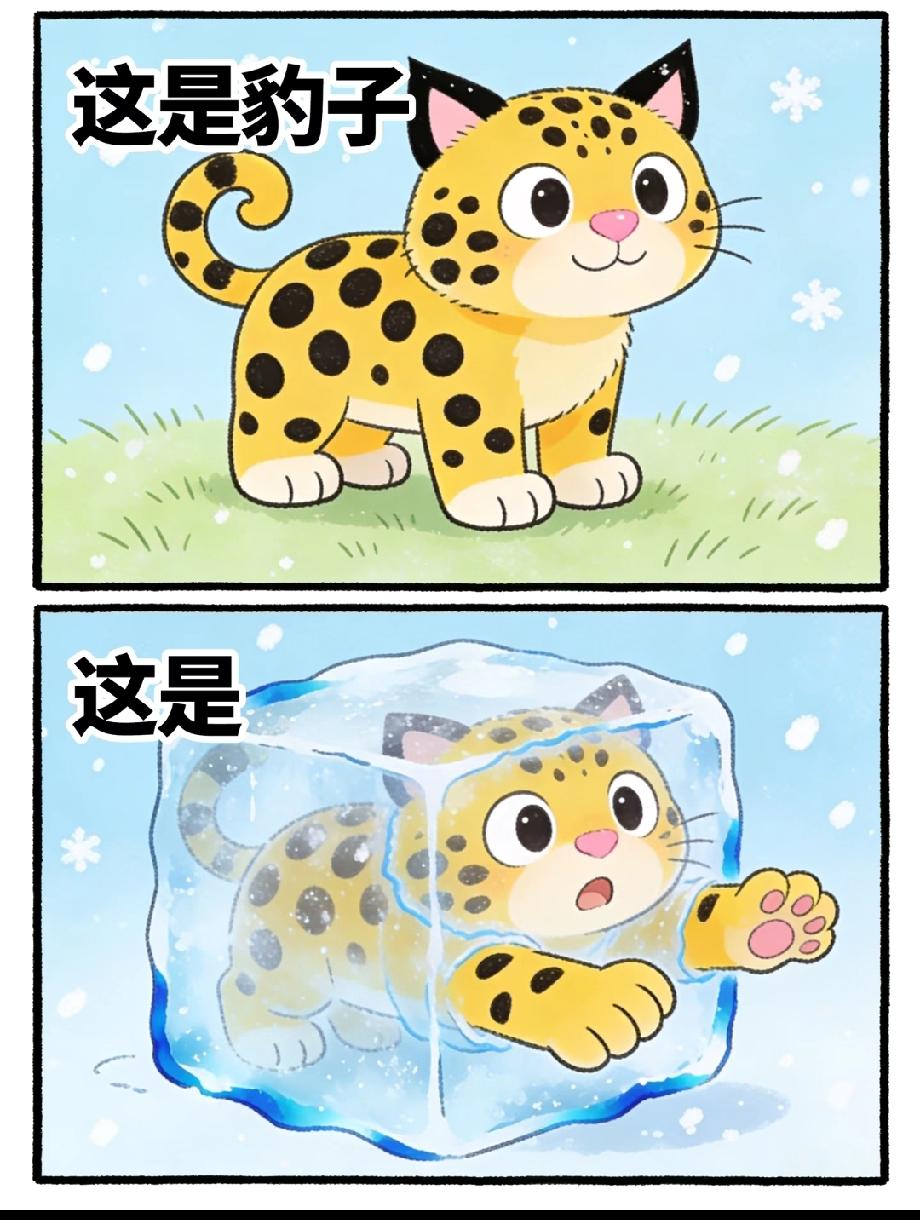 被这张图整懵了!豹子加冰块,评论区说说你想到了什么?