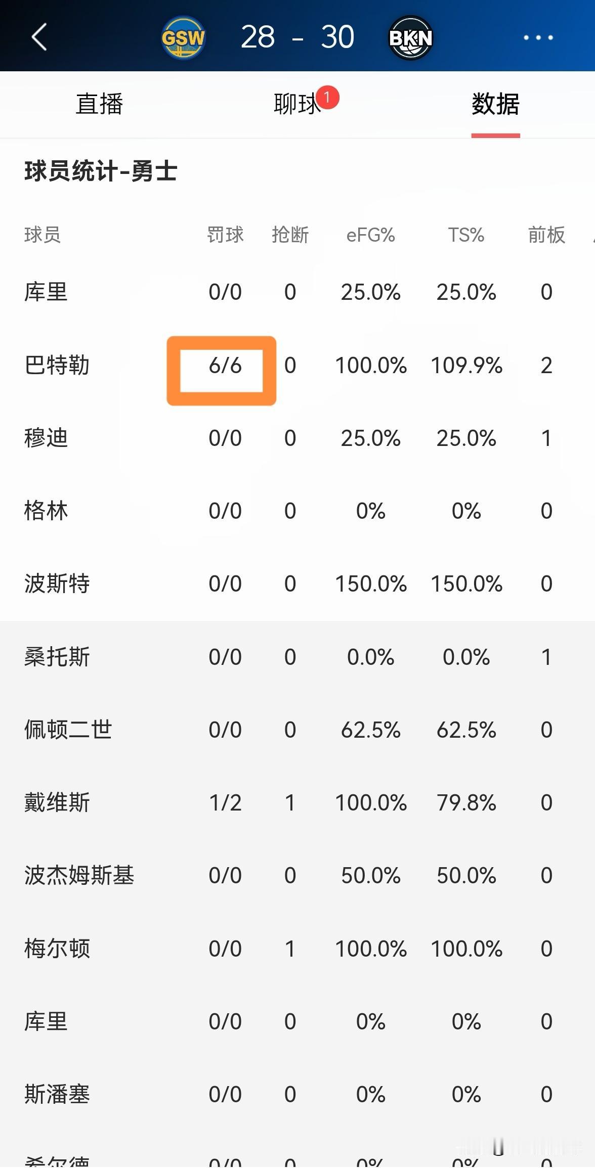 勇士超级球星巴特勒真是一个造犯规大师!在今天进行的勇士和篮网的比赛中,目前双方的第一节比赛已经结束,勇士以28:30落后对手2分。值得一提的是,在首节比赛中,巴特勒首发出战8分钟,投篮1中1,其中罚球6中6得到8分2篮板1助攻。 在第一节比赛中,巴特勒向篮网的主场球迷展现了自己超强的造犯规能力,每当巴特勒走上罚球线,篮网的主场球迷就会爆发出非常大的嘘声。