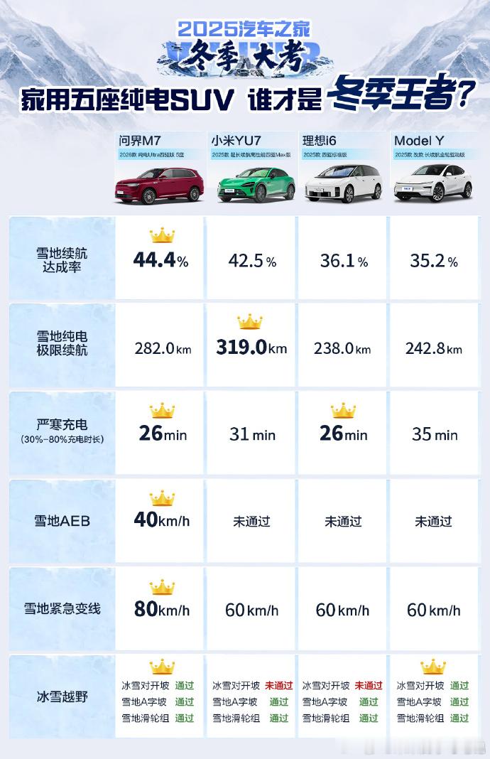 全新 :汽车之家冬测,纯电五座SUV组雪地之王! 可惜不知道为什么,这次冬测没上,同为鸿蒙智行旗下的纯电五座SUV、R7的风阻更小,续航达成率和极限续航里程可能表现会更好。