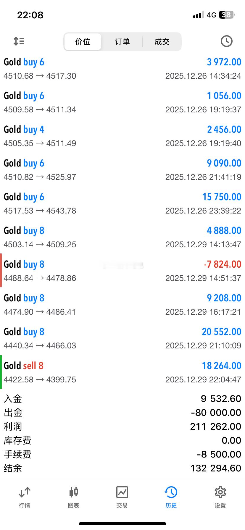 2025.12.29日共操作5单,4胜1负!共斩获660个点!今天收获不错,我们每天继续,今天到此收工,晚安!晚安