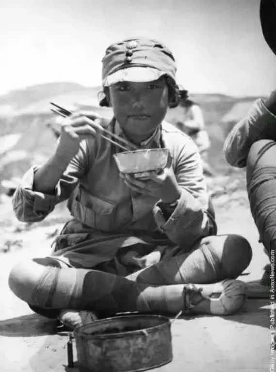 抗战时期,一位女学生兵正在吃午饭。尽管这是一个艰困的时代,但是却能淬炼出高尚的灵魂。FW