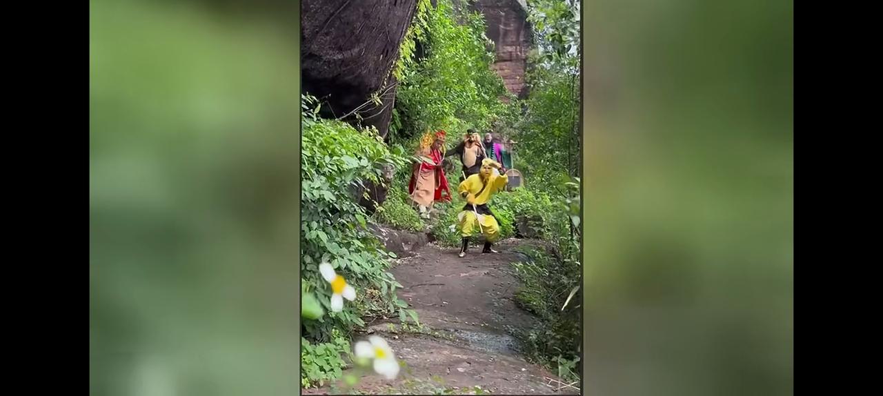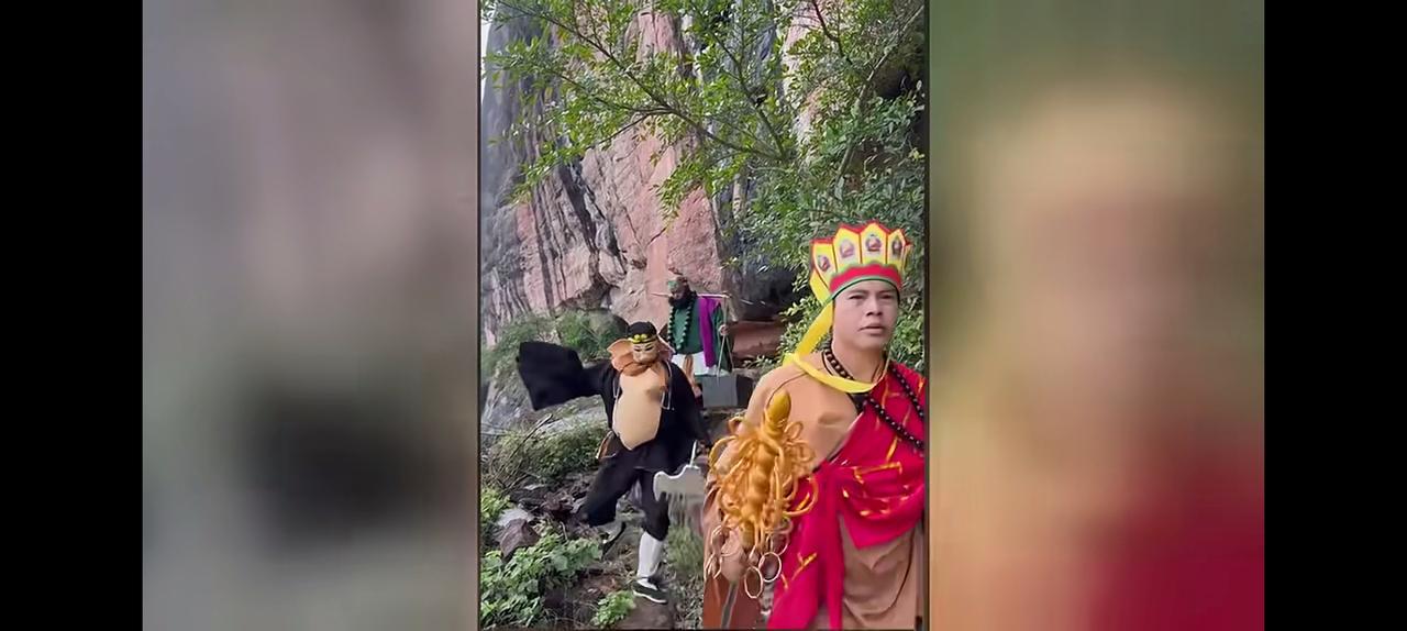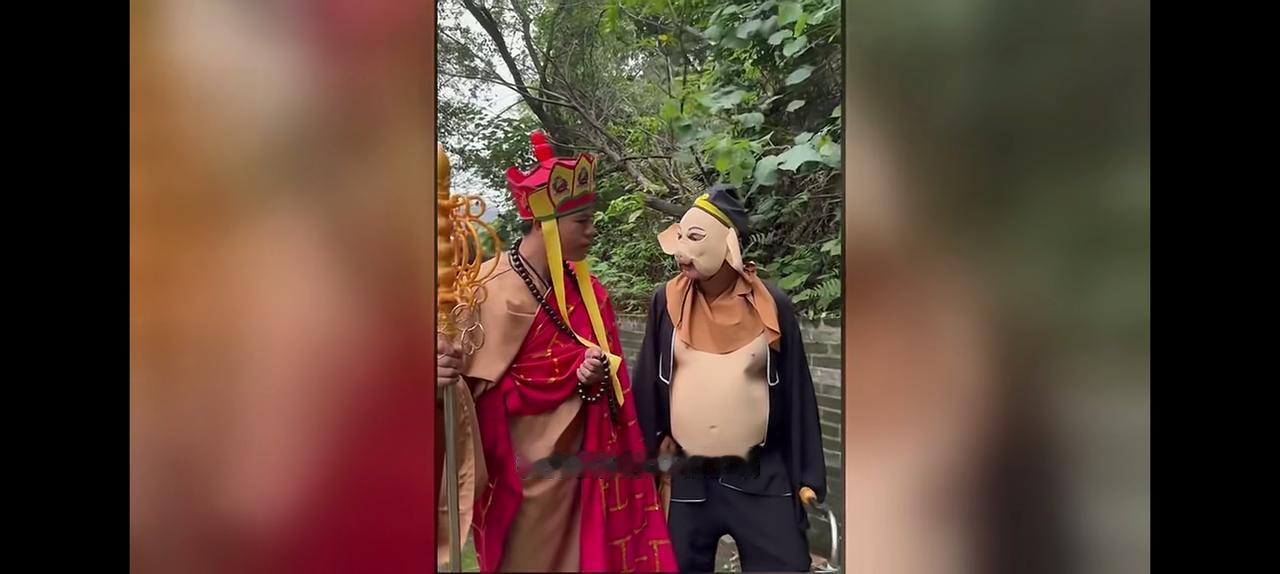 直播间里面的唐僧师徒又出发了。你还别说,这景还选的真可以。你看他们几个有模有样。沙僧担的箱子还真有点儿沉甸甸的,不知道里面放的啥宝贝?猪八戒憨态可掬,就是不知道大冬天,你晾着肚皮,冷不冷啊?还有这个唐僧,等一等,怎么一开口就是广东话,这到底是哪来的唐僧?再看这几个妖怪,虽然相貌平平,但演戏是认真的,作妖那也是不含糊的。 我们的国宝又复活了,哈哈!