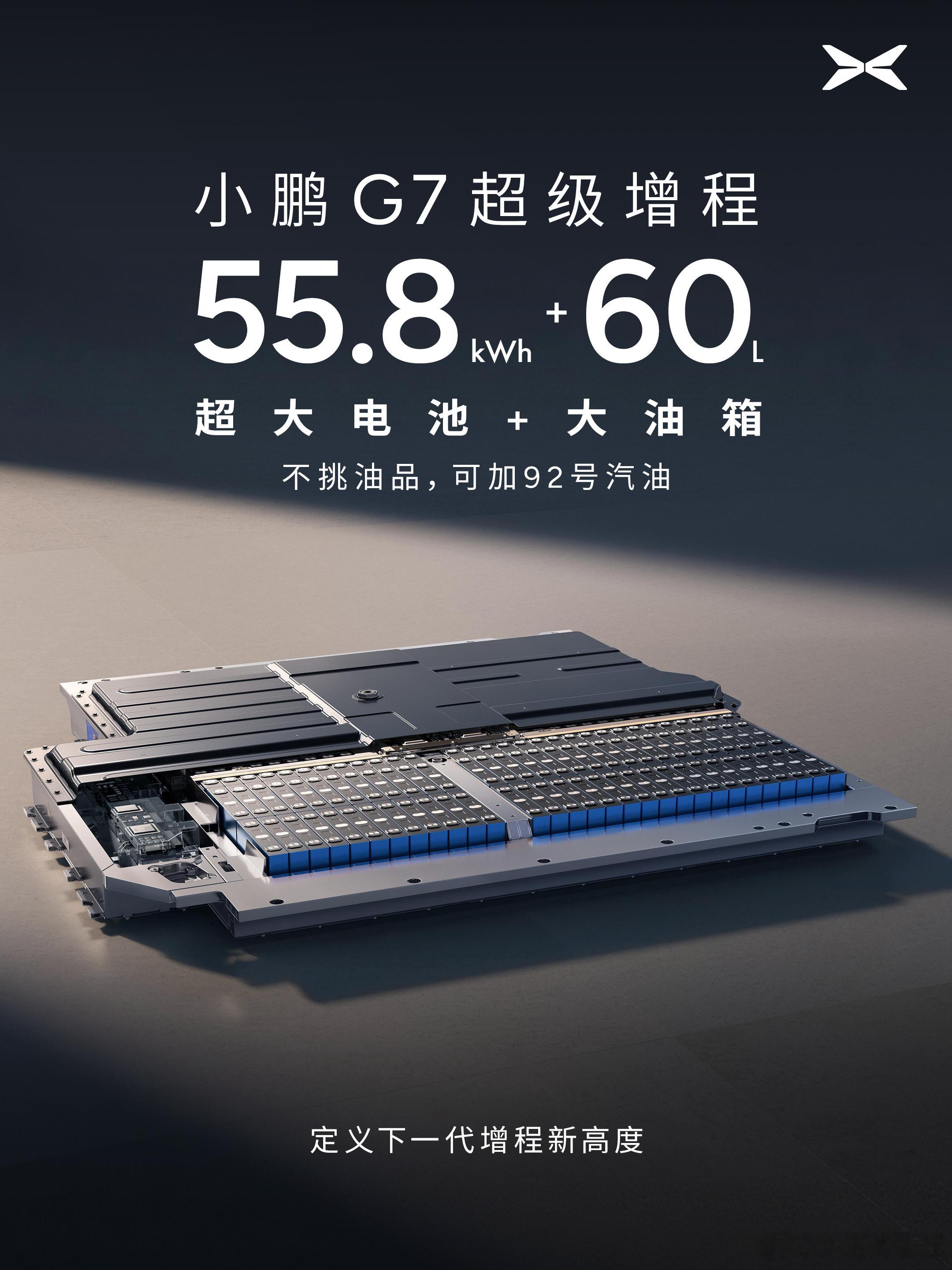 1704公里超长续航SUV小鹏G7来了小鹏鲲鹏超级增程家族首款SUV——小鹏G7超级增程来了,直接把综合续航上限拉到新高度:全球最长1704公里!何小鹏称:一车双能,是小鹏G7超级增程给日常与远方的答案。430公里的纯电续航满足城市通勤,1704公里综合续航让今年春节回家、长途远行的自由度拉满,不挑季节不挑路线,实现续航自由以及用电自由。满配实力,全程安心:800V+5C超充AI电池,实现12min充电314km;55.8kWh 超大电池 + 60L 大油箱,自带超级充电站;标配ENC+RNC 双主动降噪,实现无感增程,静谧出行!小鹏G7超级增程 更是融合了有效算力高达2250TOPS的极致科技与远超同级的超大空间。既要实现说走就走的自由,更要满足每一程都从容惬意的享受。