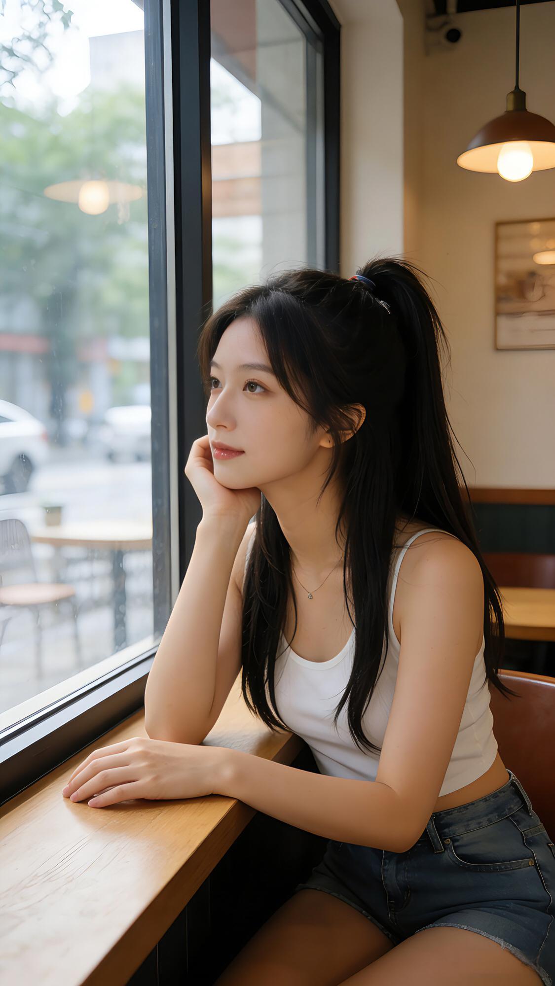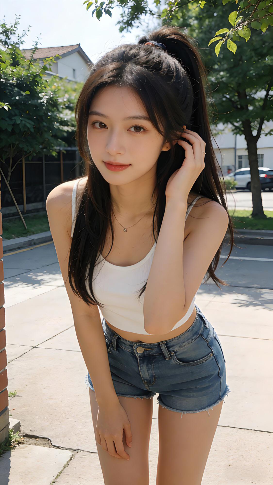 白T搭配牛仔短裤,洋溢着无畏的青春气息。