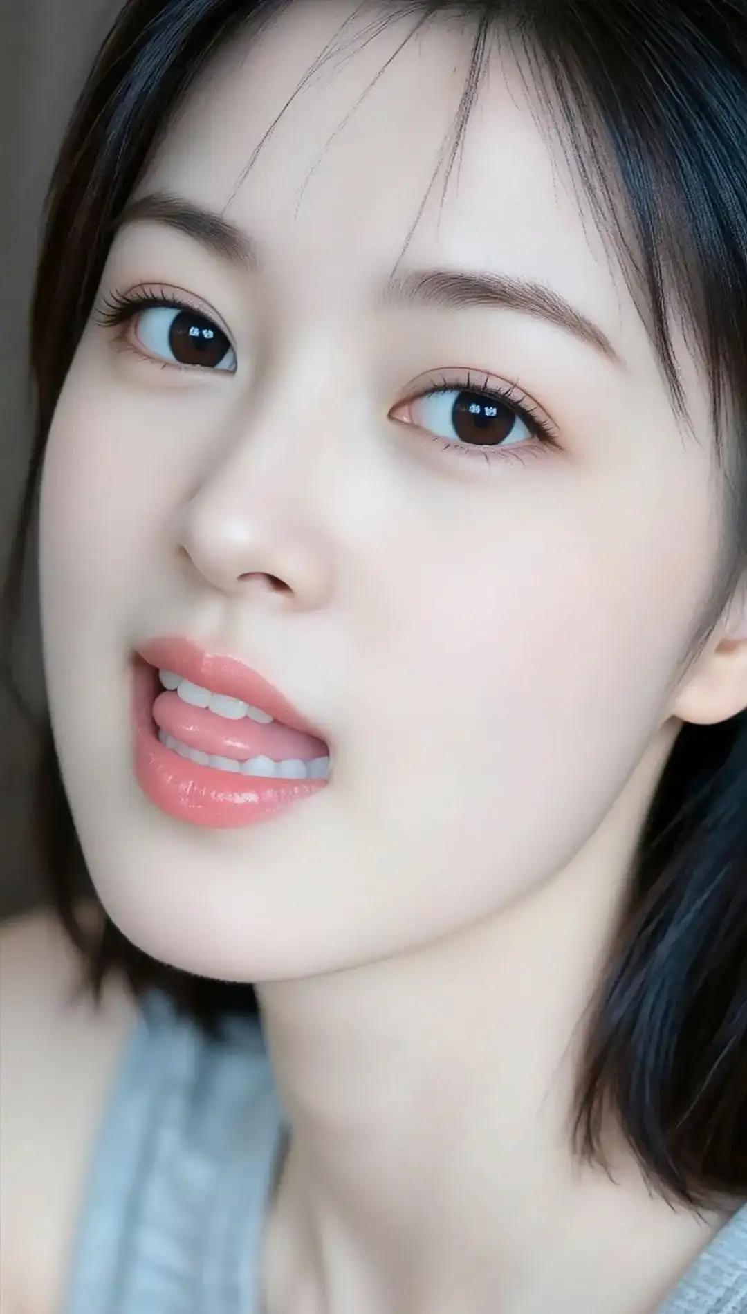 温柔甜美的少女,红唇与大眼睛的完美搭配,散发着迷人的魅力。