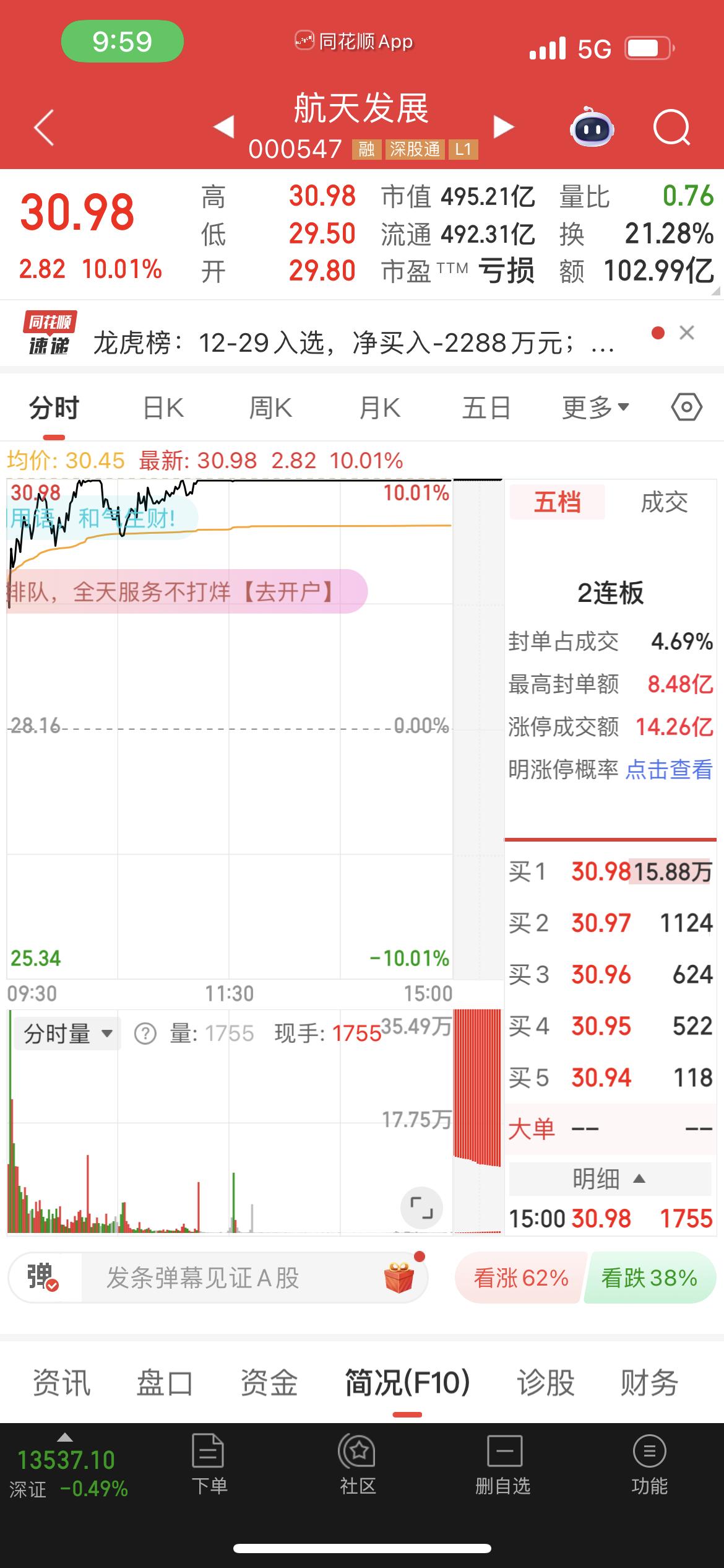 航天发展逆势冲高!商业航天无视看空潮 持股忐忑踏空捶胸 周末的A股市场,关于商业航天板块的看空声浪几乎刷屏,不少声音都在唱衰这轮已经持续月余的行情,认定鱼尾行情下的调整近在眼前。但早在早盘,我就笃定表态:问题不大,今天的商业航天大概率继续收涨。 果不其然,“大哥还是大哥”,商业航天板块不负所望,全天逆势走强,最终大涨两个点,再度点燃市场情绪。这波强势拉升,直接把两种心态的投资者推向了两个极端——没进场的人看着节节攀升的股价,恨不得拍断大腿;已经满仓布局的人,却又每天提心吊胆,生怕突如其来的大跌吞噬利润。 而我选择按兵不动,继续满仓坚守航天赛道,更让人振奋的是,尾盘卫星相关标的直冲涨停板,为今日的行情画上了一个亮眼的句号。基于当前的盘面强势表现,我对明天的走势依旧看涨,决心继续抱紧主线不放。 与此同时,今日跌幅靠前的锂矿、医药板块,也再次印证了此前的判断。早在周五,我就明确提醒,这两个方向还没到抄底和追涨的时机,如今的下跌走势,正是节奏踏错的警示。 在当下的分化行情里,选对主线、踩准节奏远比盲目跟风重要,哪怕身处热度爆棚的赛道,也得在看涨的同时绷紧风险这根弦。 航空航天板块 航天概念股 中国商业航天