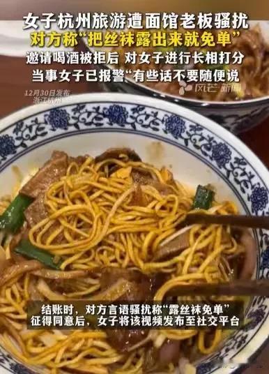 浙江杭州,女子和朋友在面馆吃面,老板的朋友却过来邀请她们喝酒,她们拒绝了,老板的