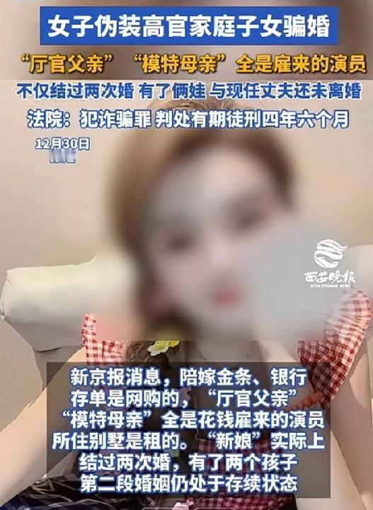 假金条,假存单,假别墅就连“厅官父亲”“模特母亲”都是雇的演员!以为是豪门千金结果却是《许我耀眼》的诈骗版! “厅官父亲”谈吐儒雅,“模特母亲”气质温婉,陪嫁的金条闪耀夺目,承诺的别墅奢华气派——本以为这是一场几乎完美的豪门联姻,结果却是一场彻头彻尾的骗局。2025年12月,湖北随州市曾都区人民法院对这起轰动全网的骗婚案作出一审判决,被告人尹立肖(化名尹小迪)因犯诈骗罪被判处有期徒刑四年六个月,并处罚金两万元,追缴违法所得发还被害人。 2022年5月,武汉主播郑浩东收到陌生女子尹小迪的私信,对方自称1994年出生,从事美容行业,家境优渥,父亲是厅局级干部,母亲是退休模特。温柔的谈吐与光鲜的人设迅速俘获了郑浩东的心,两人跨省交往两个月后确立恋爱关系。 为巩固骗局,尹小迪频频放出“大招”:三次出具网购的虚假怀孕报告,又以“意外流产”为由索要安抚费用;在谈婚论嫁阶段,花费重金雇来职业演员扮演“厅官父亲”、短剧演员扮演“模特母亲”,还请情感主播客串“大舅哥”。2023年5月,郑浩东母子与“尹家父母”在武汉某商场见面,“尹父”承诺为郑浩东安排优渥工作,让其家人彻底放下戒心。2024年5月婚礼当天,“尹家亲友”悉数到场撑场面,郑浩东按风俗支付14.8万元彩礼,尹小迪则带来了所谓“陪嫁”——46万元存款单、金条和一辆奔驰车。 然而,婚礼结束后不久,这场精心编织的谎言便开始瓦解。郑浩东发现,奔驰车是短期租赁的,金条经鉴定为假货,银行存单上的工作人员根本不存在,所谓的别墅婚房也只是临时租用。更令人震惊的是,警方调查显示,尹立肖实际出生于1989年,幼时丧父、母亲离家,不仅虚报5岁年龄,还曾两次结婚并育有子女,第二段婚姻仍处于存续状态。她在4年内以同样手段与至少5名男子交往行骗,骗取钱财后便迅速抽身。 这个桥段很像电视剧里《许我耀眼》的情节,所以说艺术来源于现实这句话有一定的道理。不同的是该案件中的尹女士的行为纯属诈骗。太可怕了,有多少家庭是举全家之力来给儿子娶妻,遇到这样的骗子不仅损失了钱财,更是对全家人的沉重一击! 婚恋不是一场投机游戏,而是基于信任与责任的双向奔赴。交往中,我们切不可被那些光鲜亮丽的人设,丰厚的彩礼嫁妆,豪门身份等迷惑双眼。婚姻是人生大事,必须慎重对待。现在骗婚的人不在少数,法律就该对于这些触碰法律红线的人严格处罚。