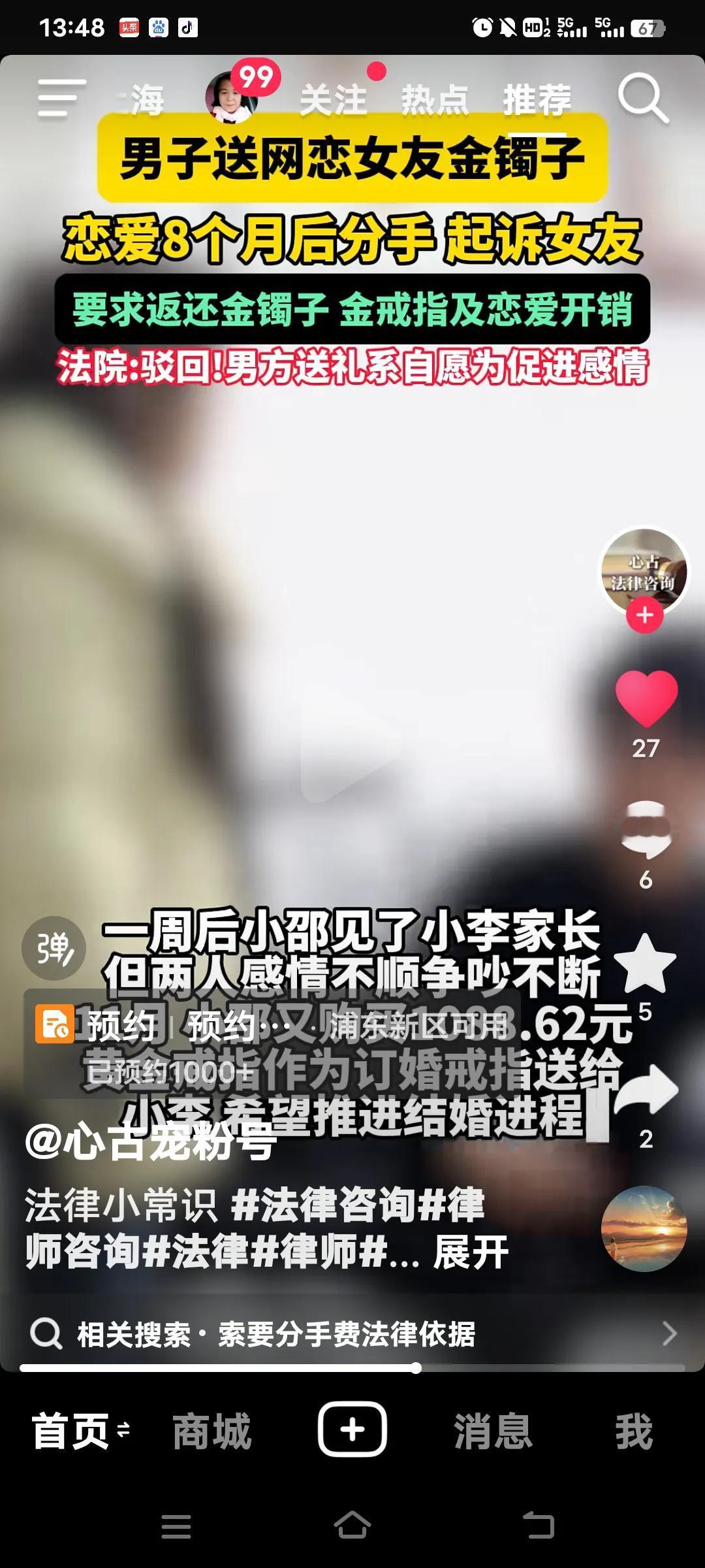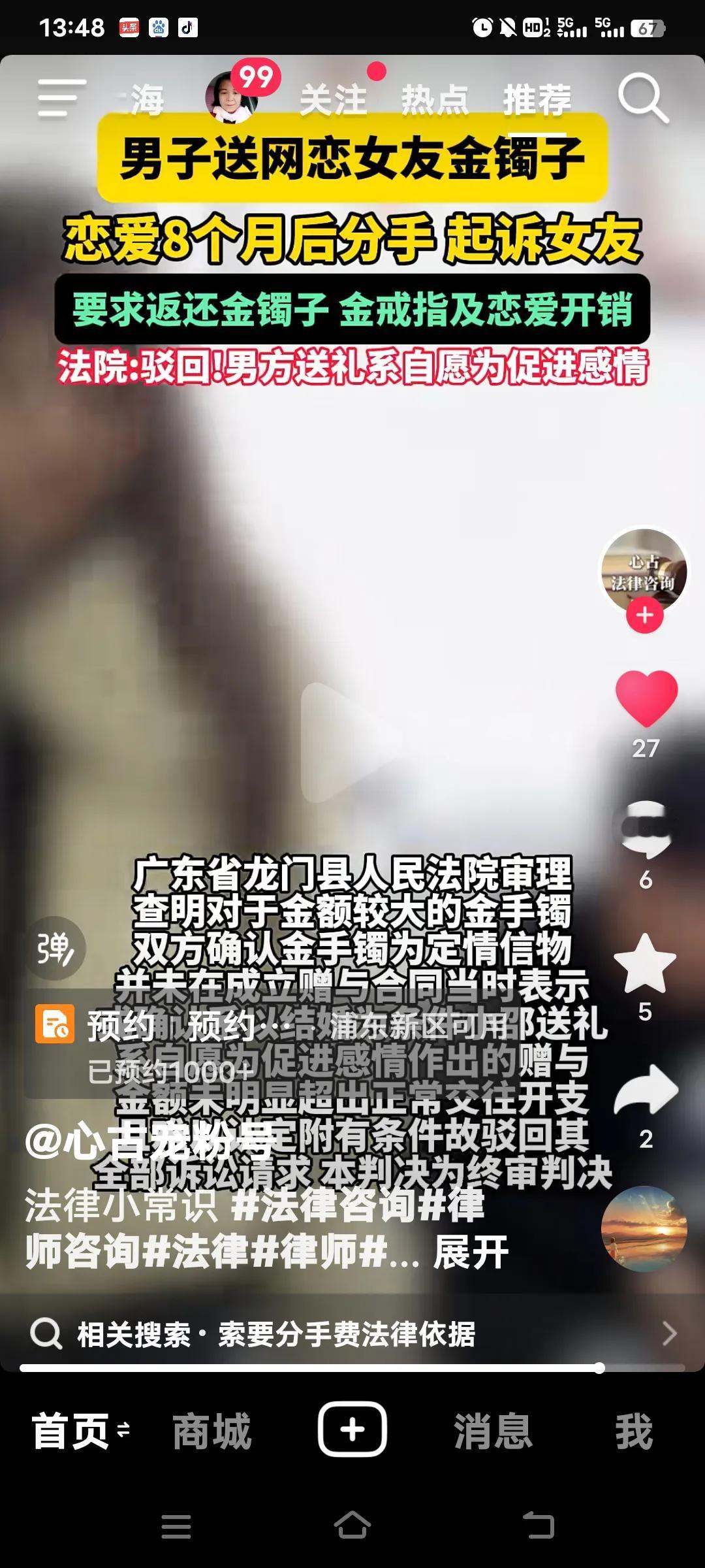 如今,网恋分手引发财产纠纷的事情屡见不鲜。网恋期间,不少人会送对方礼物以表心意,比如金镯子,送出时想必带着甜蜜的期许。然而,一旦分手,这些礼物的归属便成了难题。 2022年,小邵与小李在网上结识。2024年,小李和男友分手,小邵开始追求小李,小李未拒绝,但要求小邵证明诚意。2024年8月5日,小邵花1440元为小李买了机票,邀她到自己家,还花20692元买了金镯子,赠予时明确是以结婚为目的,小李并未拒绝。 一周后,小邵见了小李家长,两人感情不和,时常吵架。小邵又花一千多元给小李买了金戒指,当作订婚戒指,希望修补感情、推进结婚进程。 但感情最终还是难以维系,小邵想通过法律途径要回这几万块的首饰。广东省龙门法院审理认为,婚前这些物品属于正常赠送开支,无需退还,遂驳回了小邵的诉讼请求。 对男子而言,金镯子价值不菲,分手想要回也在情理之中。但女友或许觉得这是恋爱期间的赠予。实际上,法律对此类情况有明确界定,若属赠予,可能难以要回;若是大额彩礼,或许能要回一部分。 这件事也给大家提了个醒,网恋虽浪漫,涉及财物还需谨慎,否则分手后纠缠不清,闹上法庭既伤心又耗精力。 网络恋情骗局