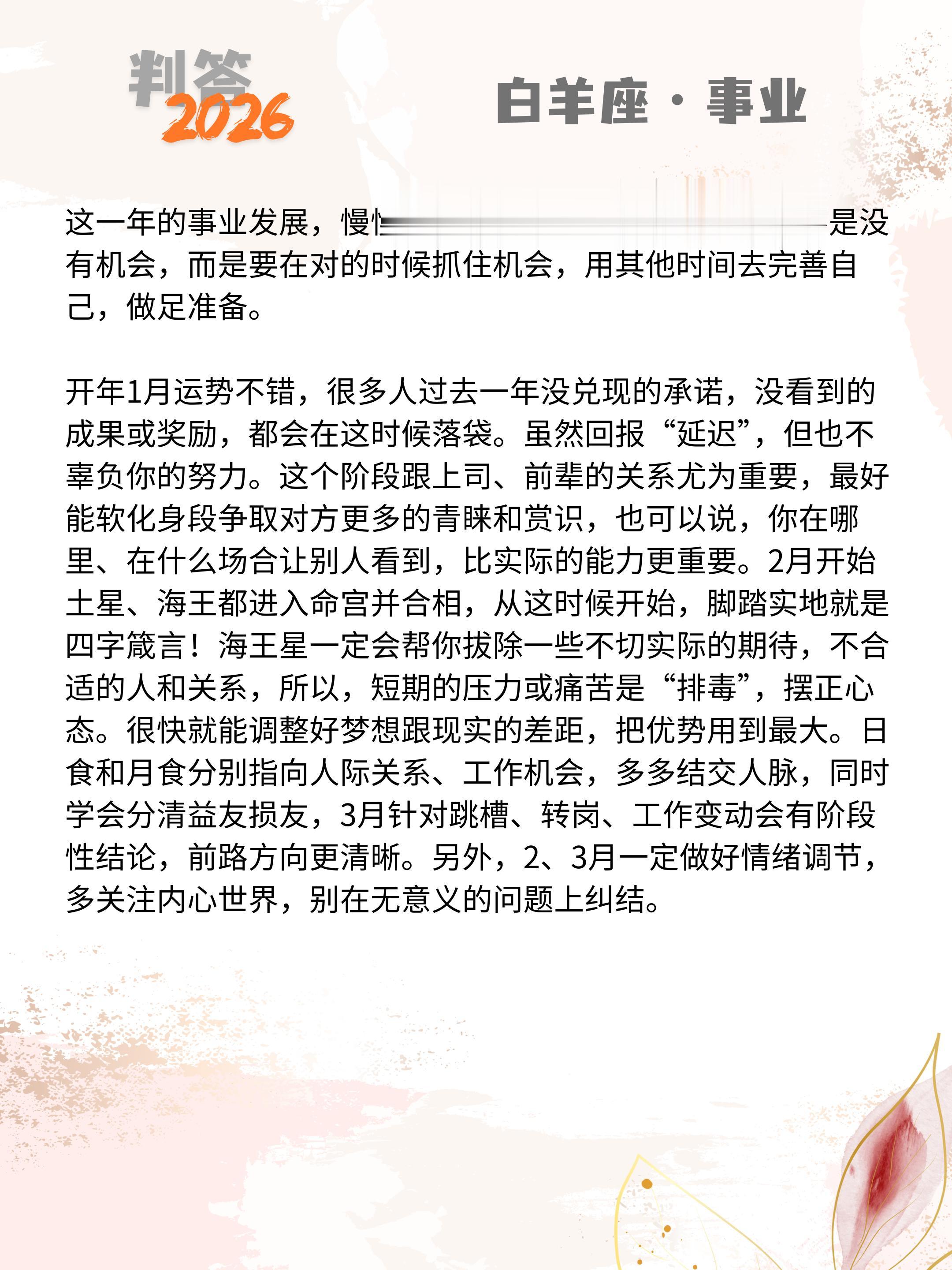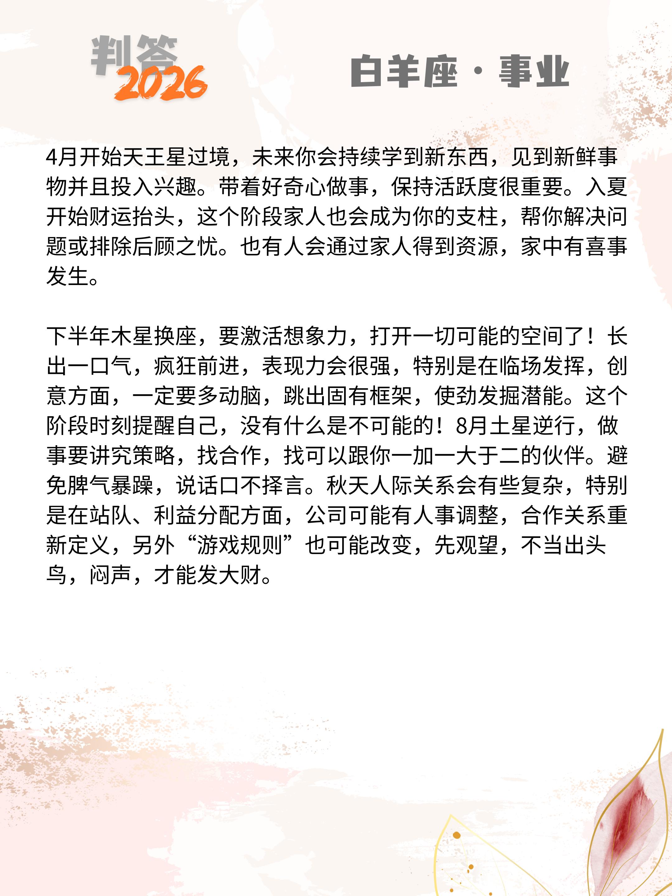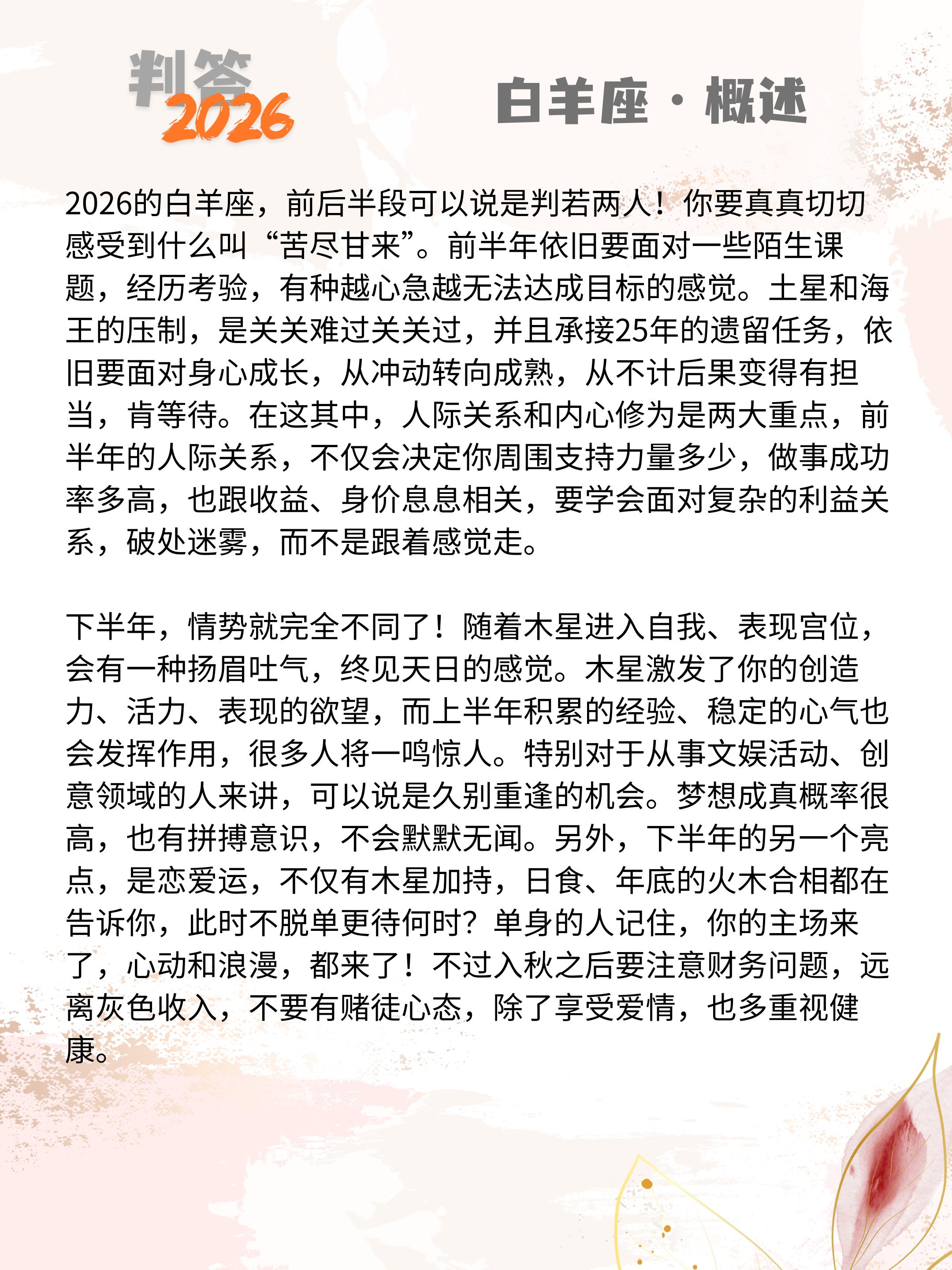 判答独家·2026年运丨白羊座出炉啦。愿你们苦尽甘来,一切顺心如意!...