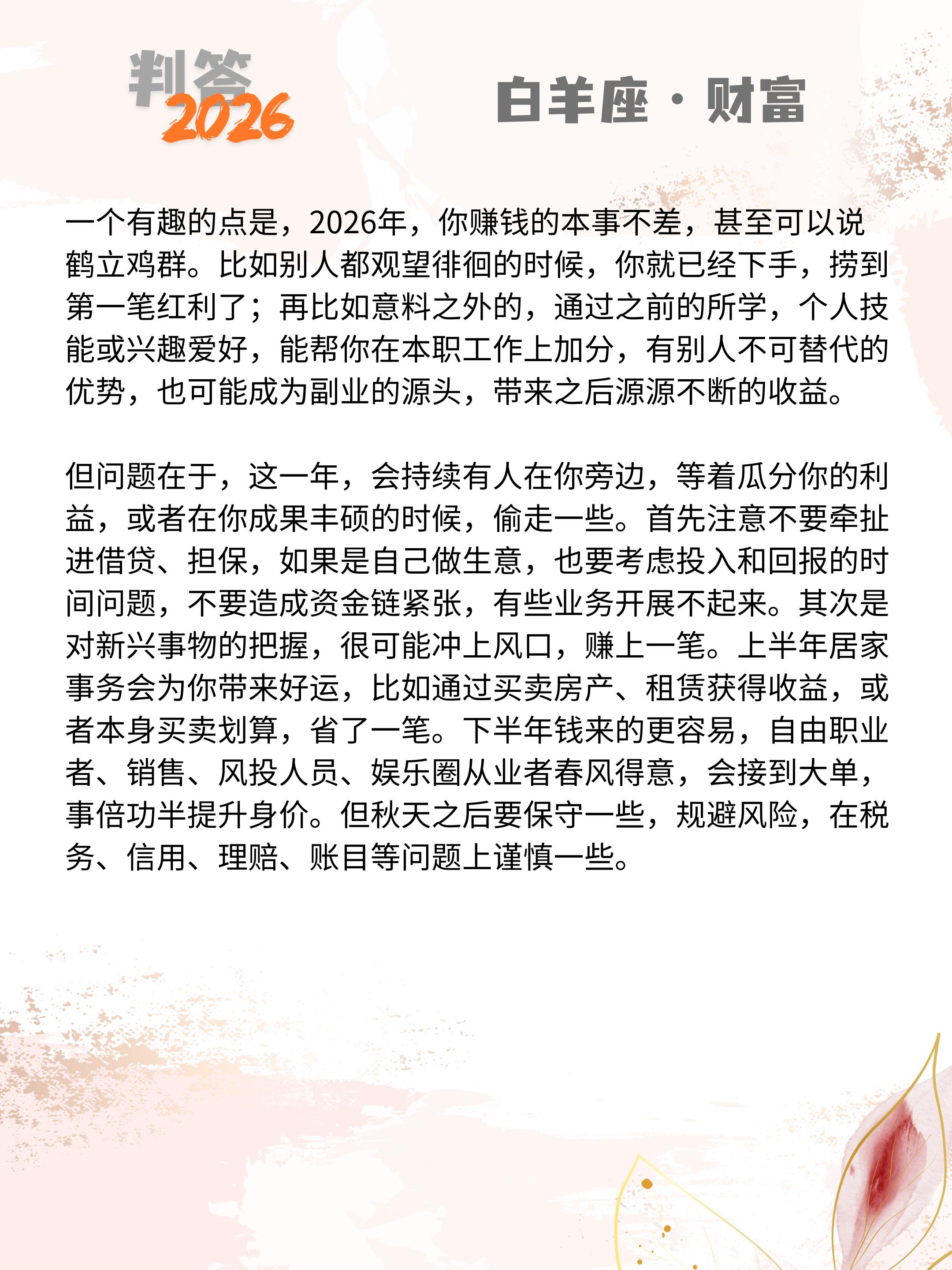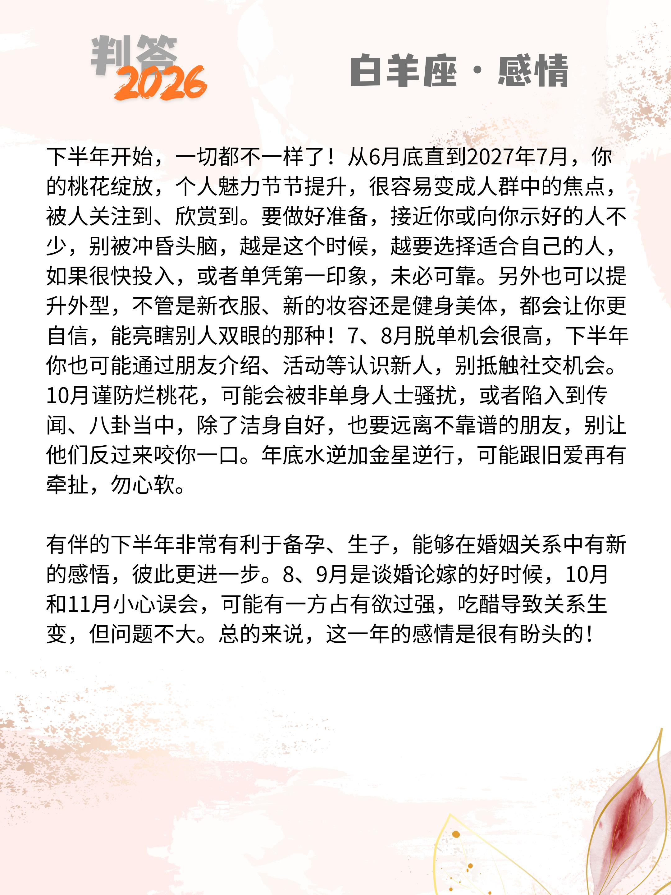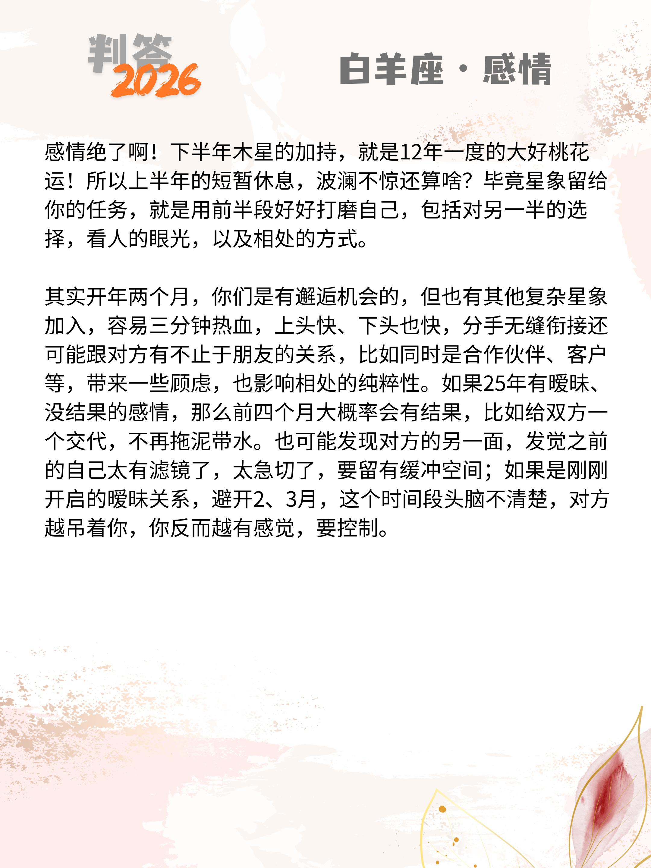 判答独家·2026年运丨白羊座出炉啦。愿你们苦尽甘来,一切顺心如意!...