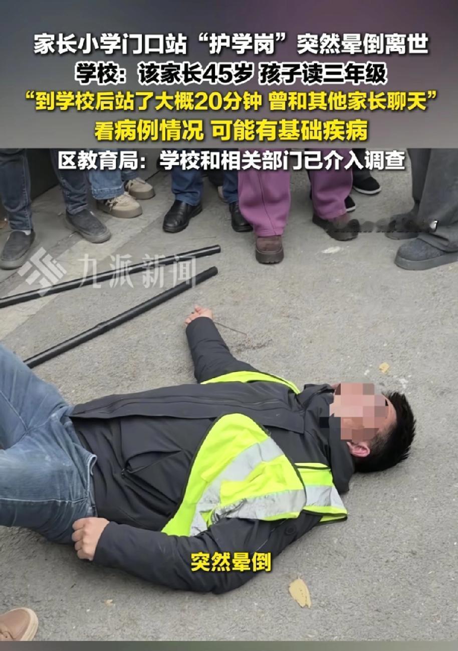 “自愿”背后的无奈,刺痛了多少中国家长! 湖南张家界,一位45岁的爸爸,在小学门口护学岗刚站了两分钟,突然倒地不起,送医后再也没能醒来。留下17岁的老大和读三年级的老二,这个家的天,就这样塌了…… 事情发生在张家界永定区的一所小学。按学校安排,家长需轮流参与“护学岗”执勤——每天上下学时段,在校门口疏导交通、守护孩子过马路。这位爸爸本是为了孩子的安全,“自愿”站上了护学岗,谁曾想,突发疾病竟夺走了他的生命。 当地教育局回应称,护学岗确实是家长“自愿参加”,并非强制性安排。 可网友们的评论,却字字戳破了这“自愿”背后的无奈: “老师一通知,哪个家长敢说不?这‘自愿’俩字,写满了我们的身不由己!” “老大17岁,老二才三年级,以后这日子可怎么扛啊……” 是啊,有多少家长的“自愿”,是被现实裹挟的“不得不”?学校一句“倡议”,为了孩子在学校能被“善待”,哪怕心里千万个不情愿,大多数家长也只能硬着头皮接下任务。这种“隐形压力”下的“自愿”,何尝不是一种绑架? 更让人揪心的是这个家庭的未来。45岁正是家里的顶梁柱,突然离世后,17岁的孩子尚未完全独立,三年级的孩子还需要人悉心照料,往后的生活重担,压得人喘不过气。有网友直言:“这不是一个家庭的悲剧,是无数被‘自愿’绑架的家长的缩影!” 还有网友提出了尖锐的质问:“在工作岗位发病可能算工伤,家长为学校护岗出事,学校难道没一点责任吗?” 细想确实如此。家长不是专业的交通协管员,没有受过急救培训,甚至连基本的安全保障都没有,就这么被推到车流中“守护孩子安全”。这种缺乏专业支撑和风险兜底的“守护”,本身就充满了隐患。 护学岗的初衷是好的,为了孩子上下学更安全。但保障孩子安全,不该以牺牲家长的健康甚至生命为代价。 我们需要的,从来不是家长硬着头皮“自愿”站岗,而是学校、社会共同搭建一套真正科学、安全的保障系统——专业的交通疏导人员、完善的应急救援机制,让家长的爱不再需要用风险来交换。 愿这位爸爸安息,也愿这样的悲剧不再重演。每个为孩子奔波的家长,都值得被好好守护;每一份对孩子的责任,都不该让家长独自承担风险。