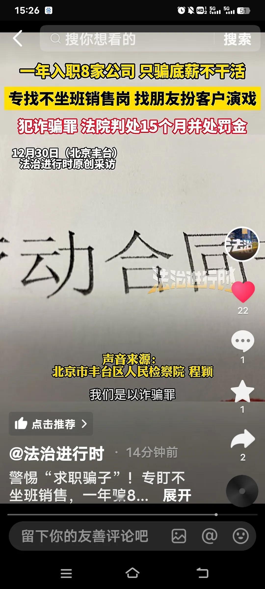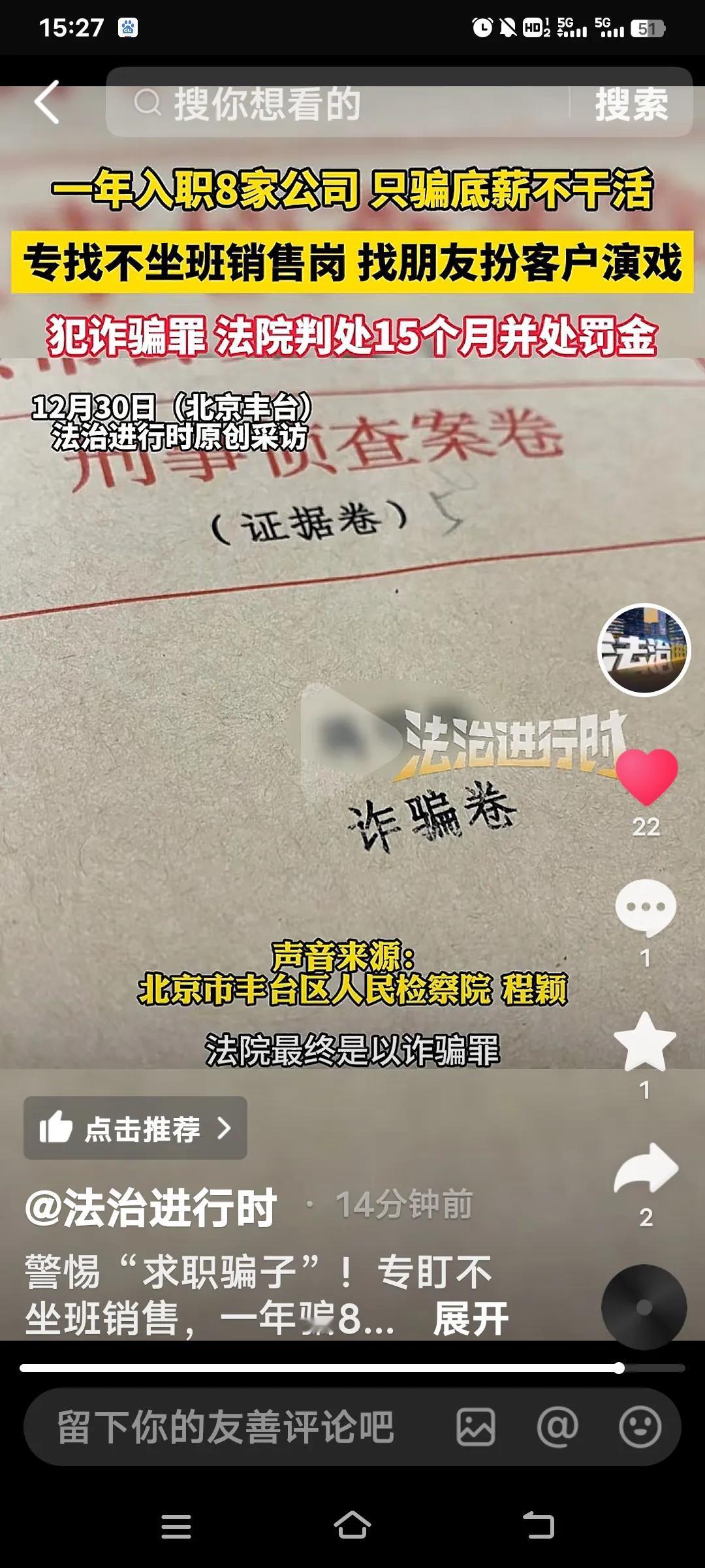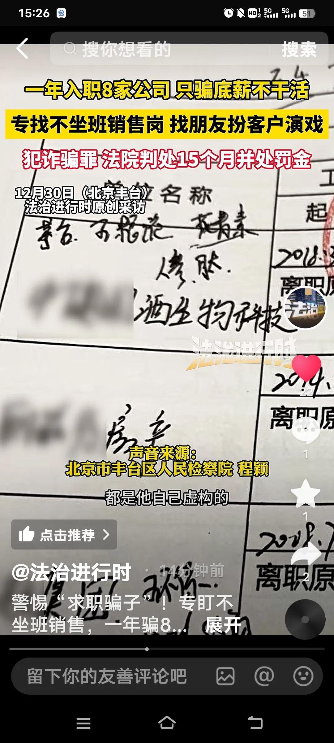 如今职场上竟出现了这般“人才”,一年里入职八家公司,只为骗取底薪而不干活。此人专挑坐班制公司下手,还找来朋友佯装客户,演技十足。 最终,其因犯诈骗罪被判处15个月刑期,并处罚金,该行为致使公司亏损达17万。这算盘打得可真够精的! 说到底,再出色的演技也终会被识破。正所谓,行得端、走得正,勤勤恳恳工作,本本分分做人,才最为重要! 职场老实人 职场傻行为 求职遭骗