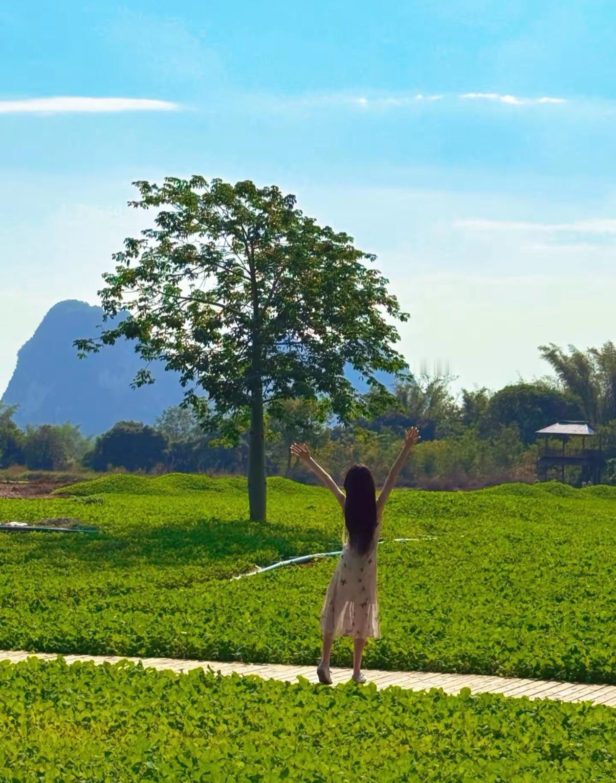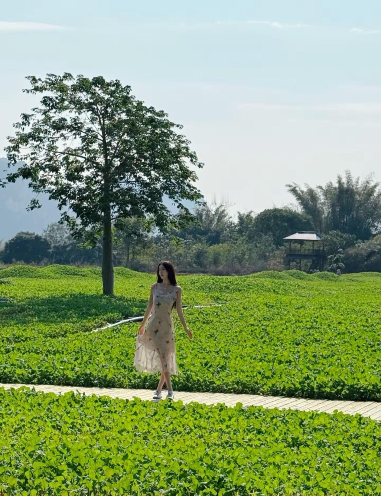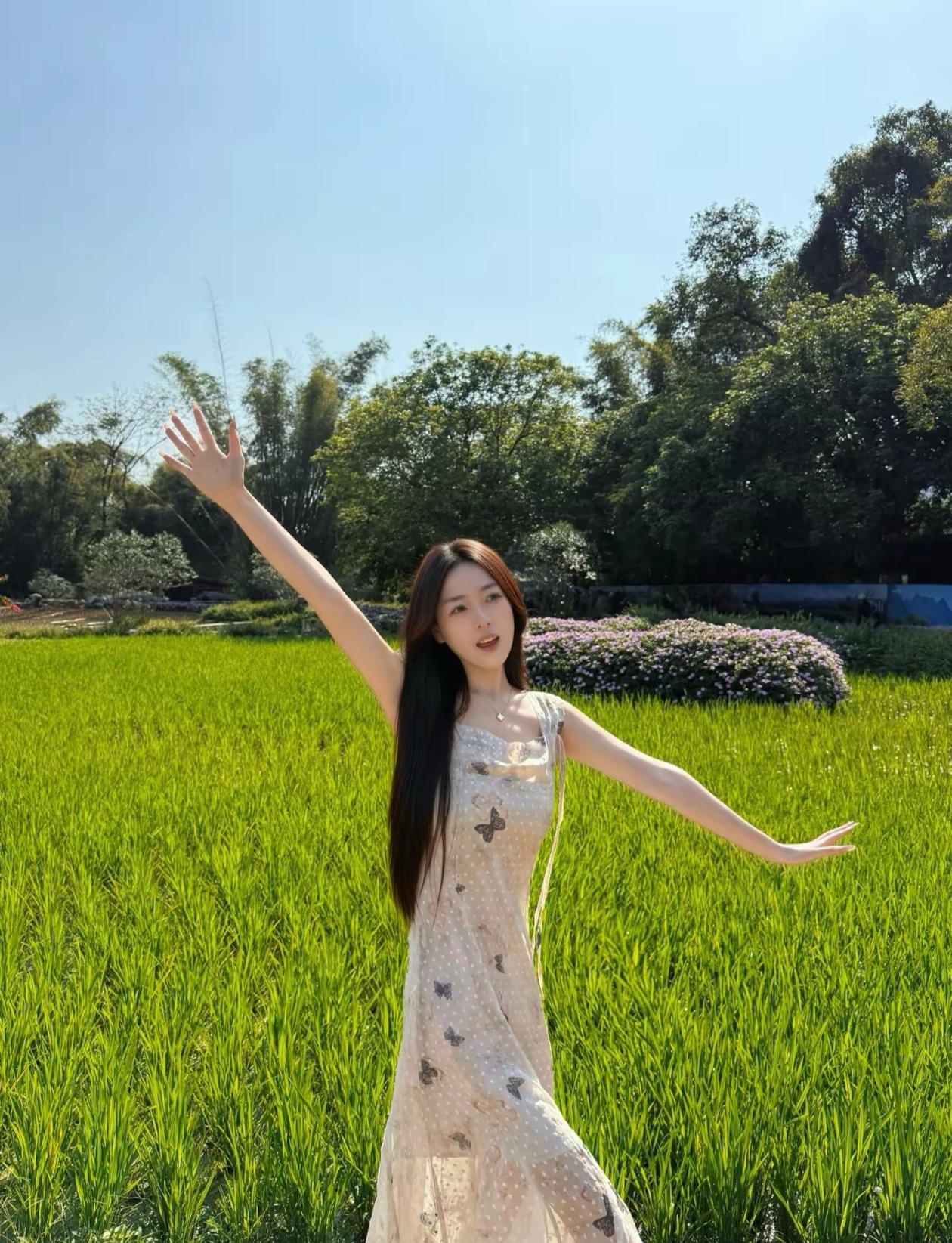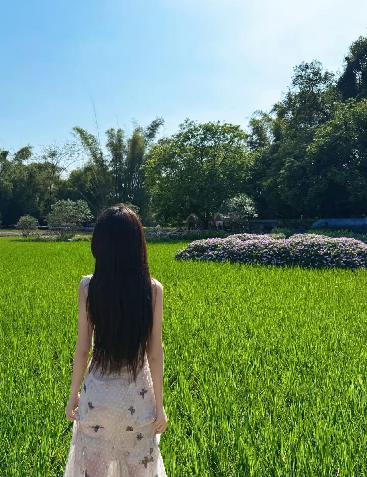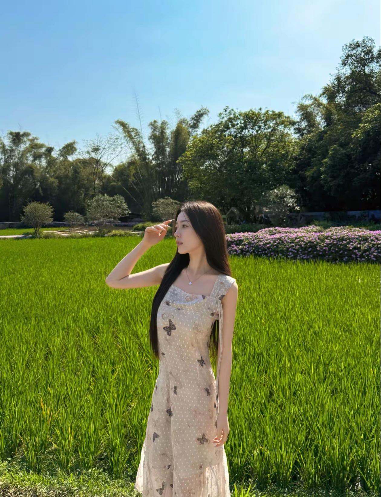 芳草碧蓝天,惊现碎花裙小姐姐在自拍